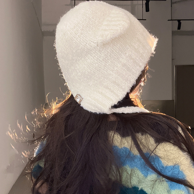 韩国新款针织帽女冬保暖护耳雷锋帽百搭显脸小套头帽纯色毛线帽子