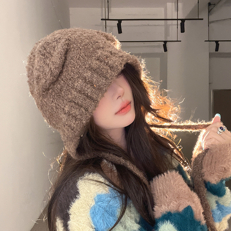 秋冬の漁師の帽子の女性の新型の保温は耳のぬいぐるみの帽子を厚くして顔を見せます。