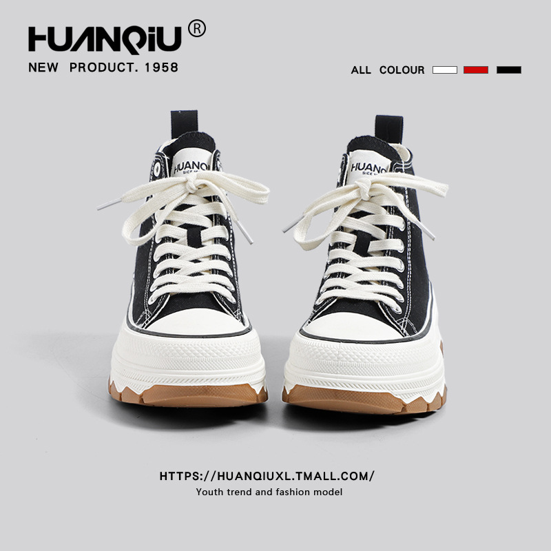 环球松糕高帮帆布鞋女2024秋冬爆款高帮ins增高秋季百搭厚底板鞋