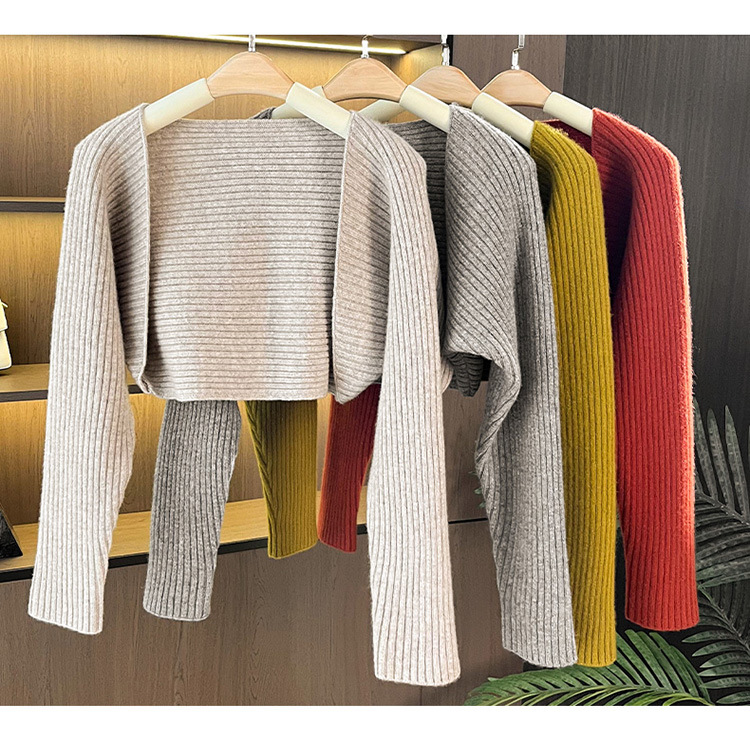 国境を越えた女装2023秋冬の新型欧米insニットの短いマントの縦のウールの小さいカンカンの肩の組み合わせ