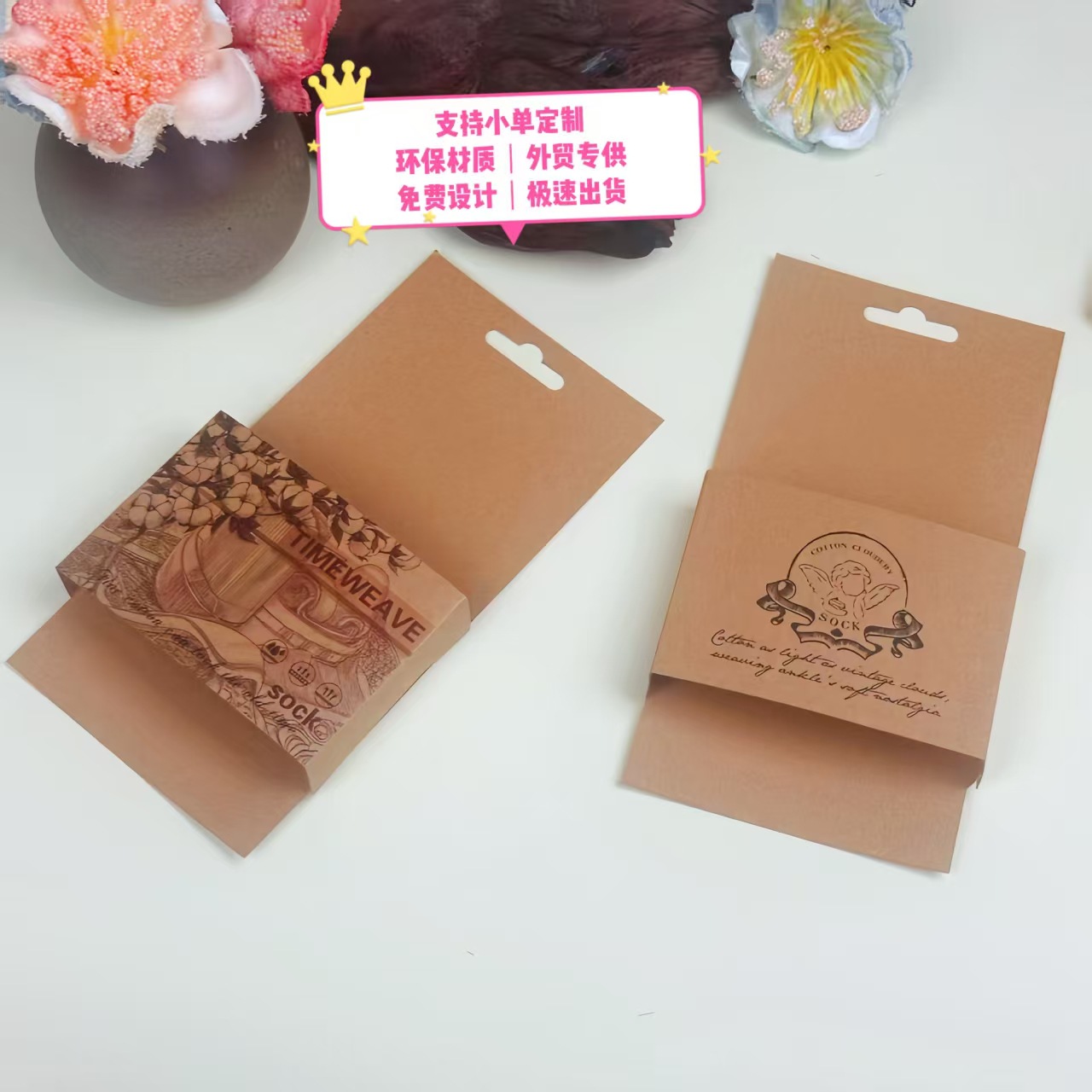 跨境牛皮纸腰封定制袜卡吊卡现货袜子卡片免挂钩封套定做厂家批发