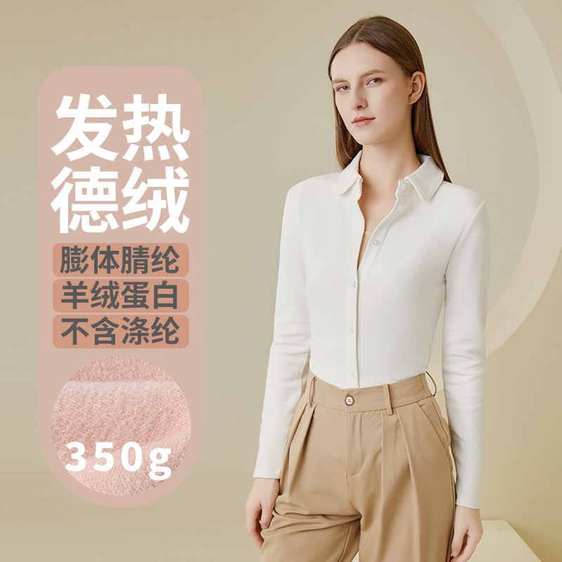 新双面德绒发热保暖衬衣打底衫女显瘦女冬季加绒加厚发暖商务衬衫