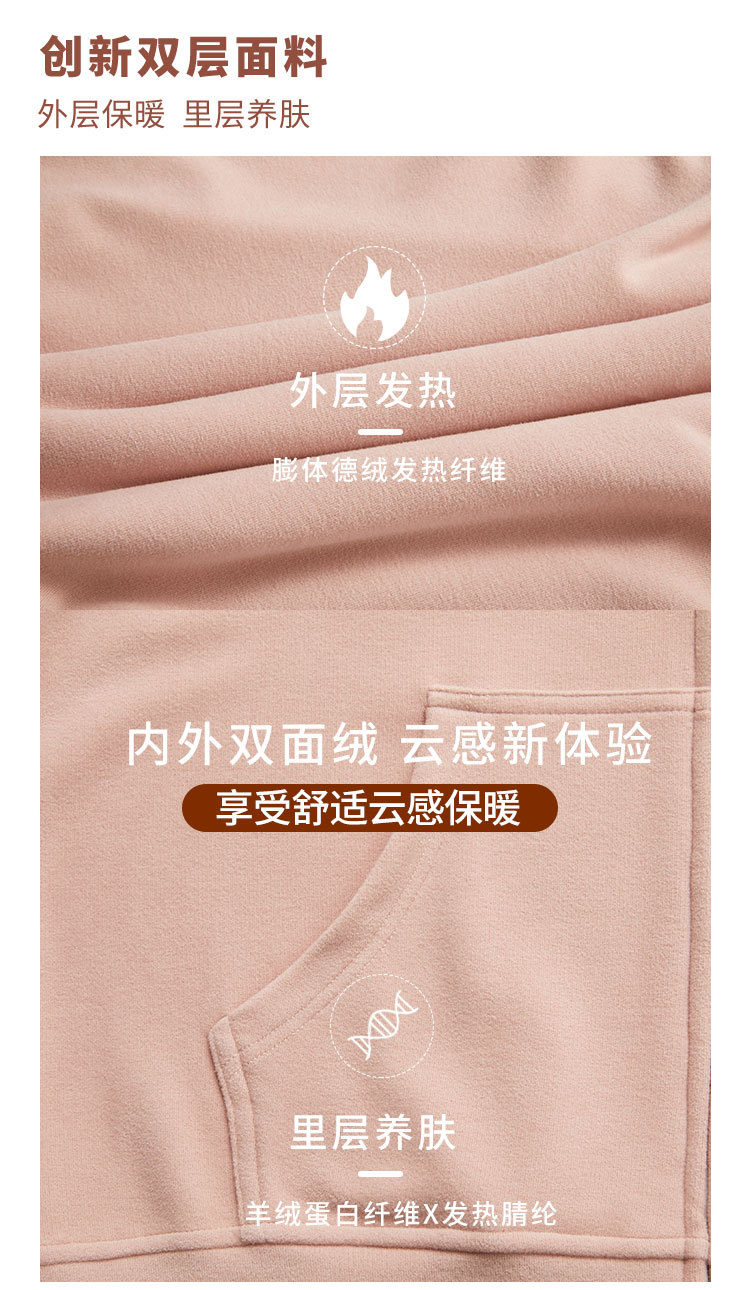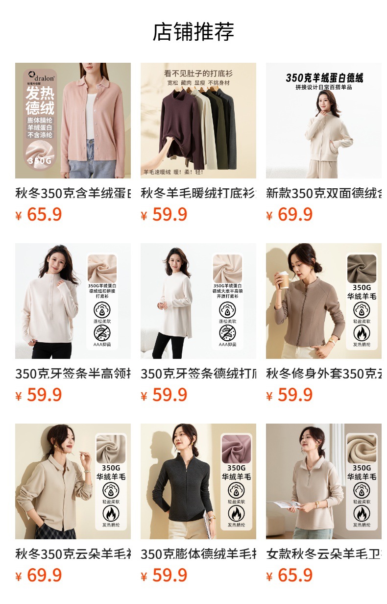新款女式秋冬加绒羊毛保暖打底小衫350克半拉链宽松德绒发热外穿