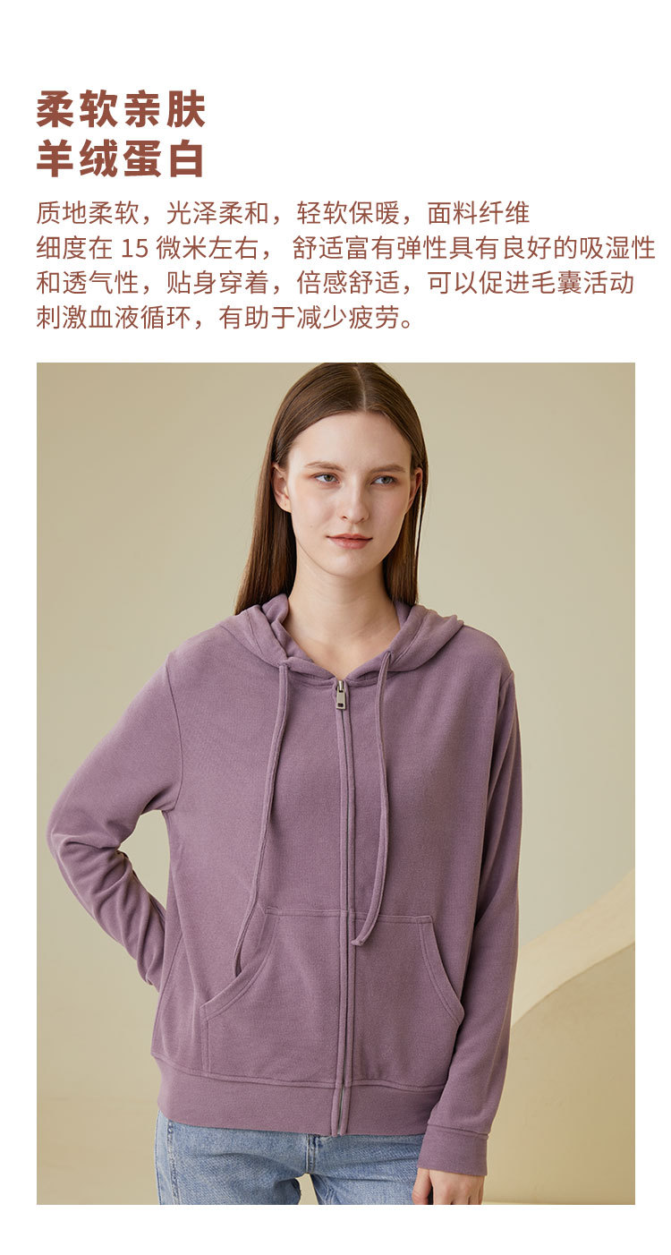 350gカシミヤプロテイン入りフード付きジッパーカーディガン、カジュアルな秋冬用長袖、保温性あり、L343、外でも着用可能、多用途