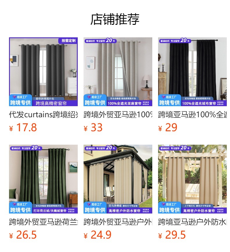 アマゾンクロスボーダー紹興完成品カーテン全遮光日焼け止め高精密対外貿易代発カースト卸売り