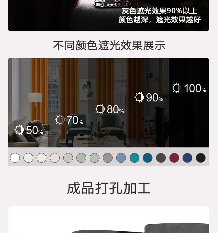 カーテンクロスボーダー外国貿易カスタム無地カーテン高精度完成カーテン布紹興柯橋遮光卸売