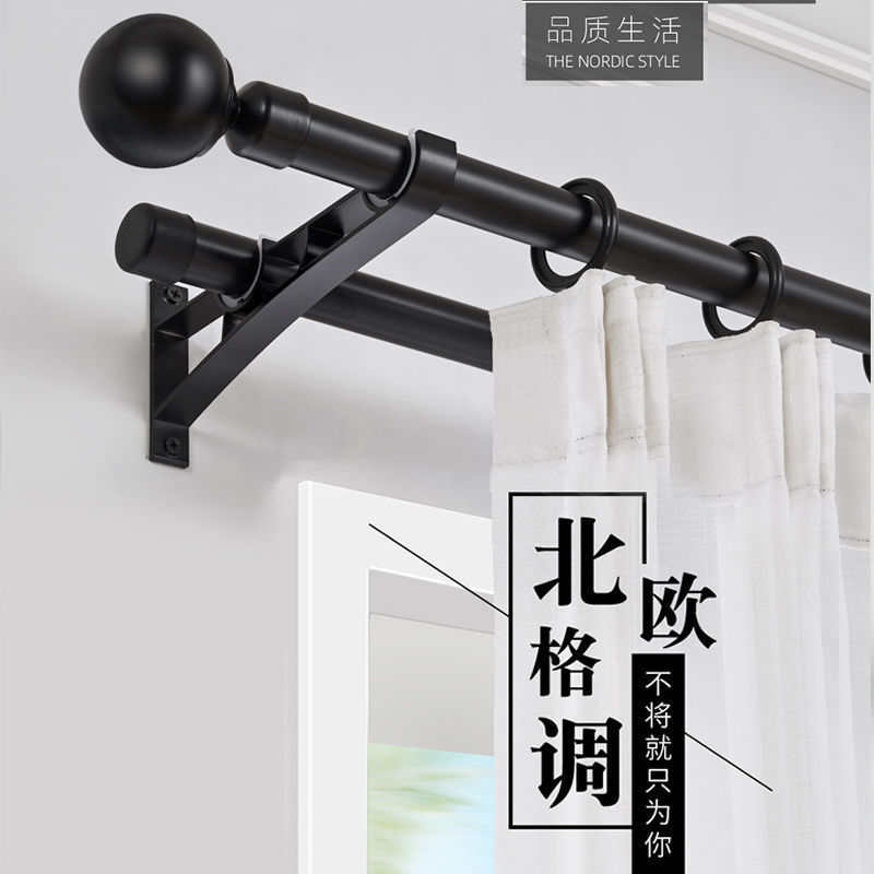 窗帘杆罗马杆黑色单杆双杆简约窗帘轨道支架配件侧装顶装包邮批发