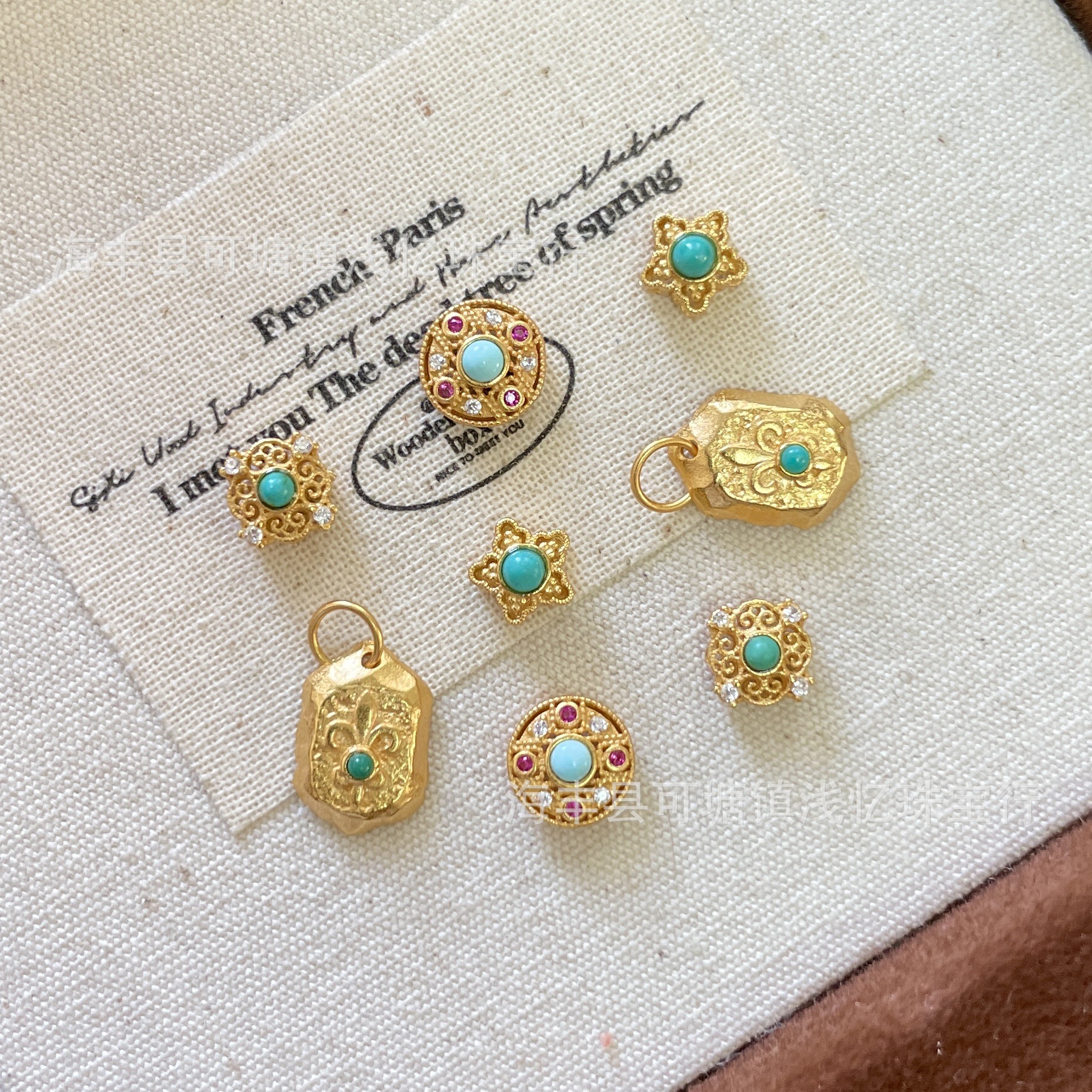 S925银镀金 松石隔珠配件滴溜卡扣 diy小吊坠隔珠串珠材料