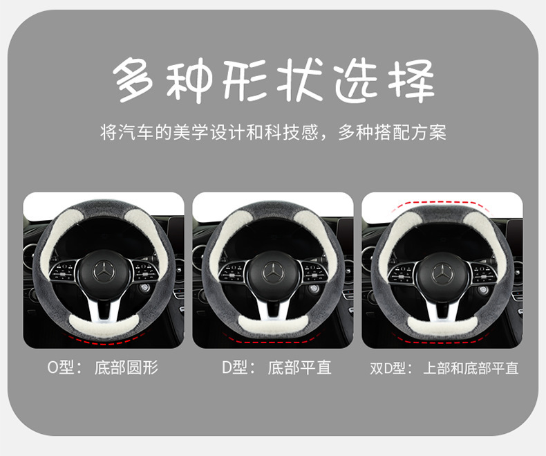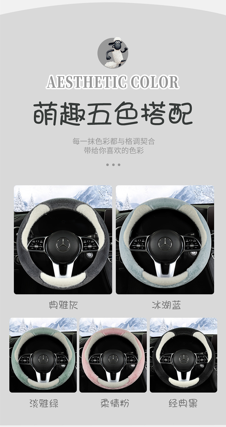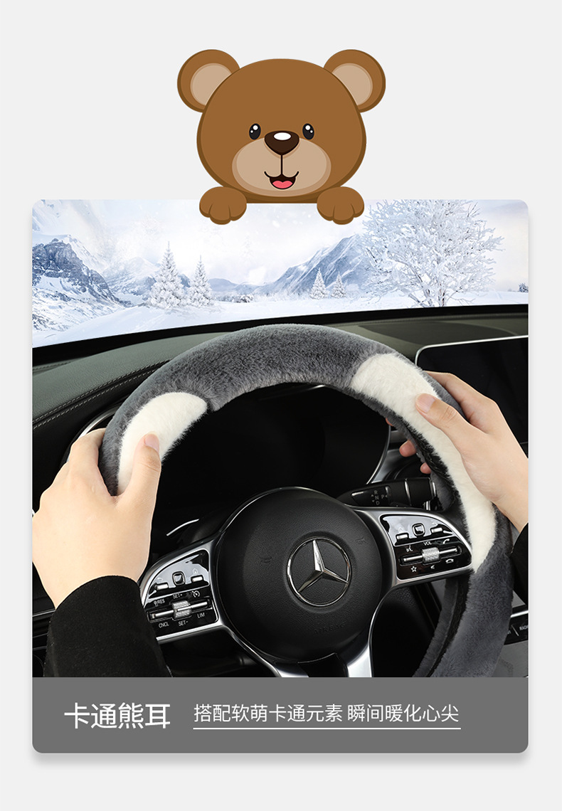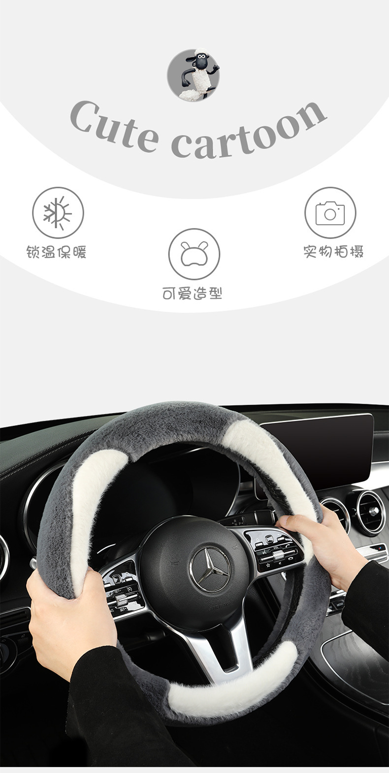 冬のハンドルカバー、ショートベルベット、暖かい、韓国風、キュートでファッショナブルな漫画の車内インテリア、冬のハンドルバーカバー、豪華な