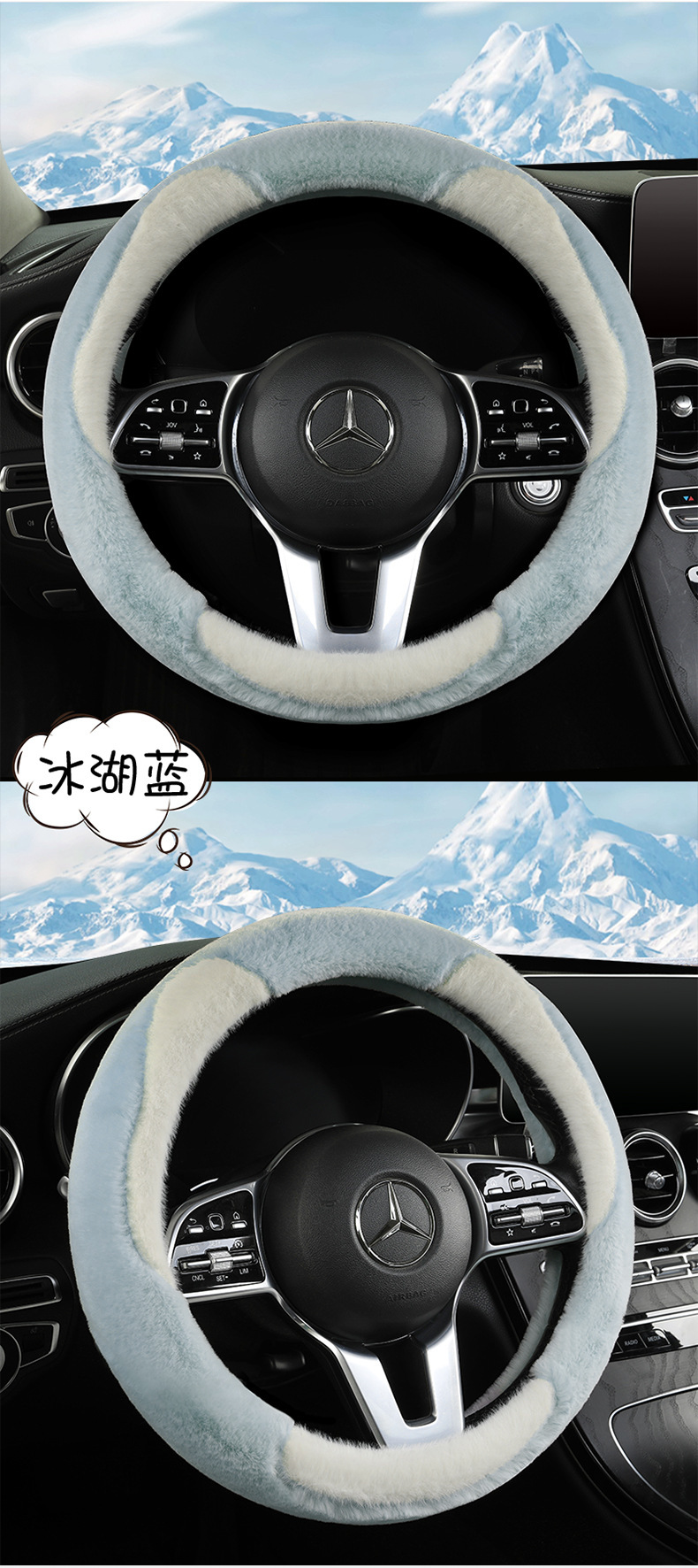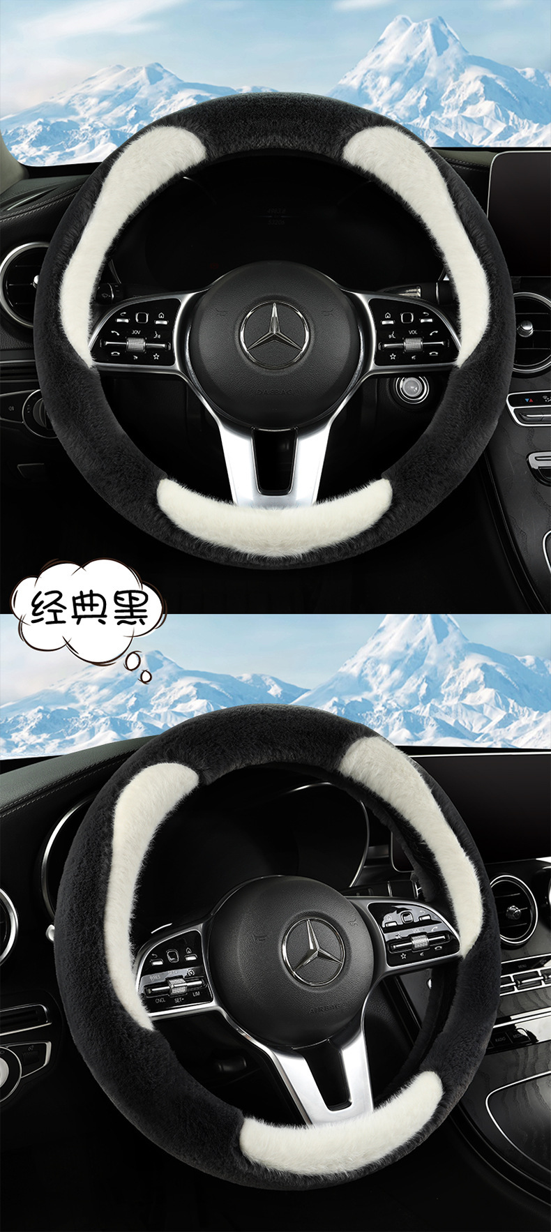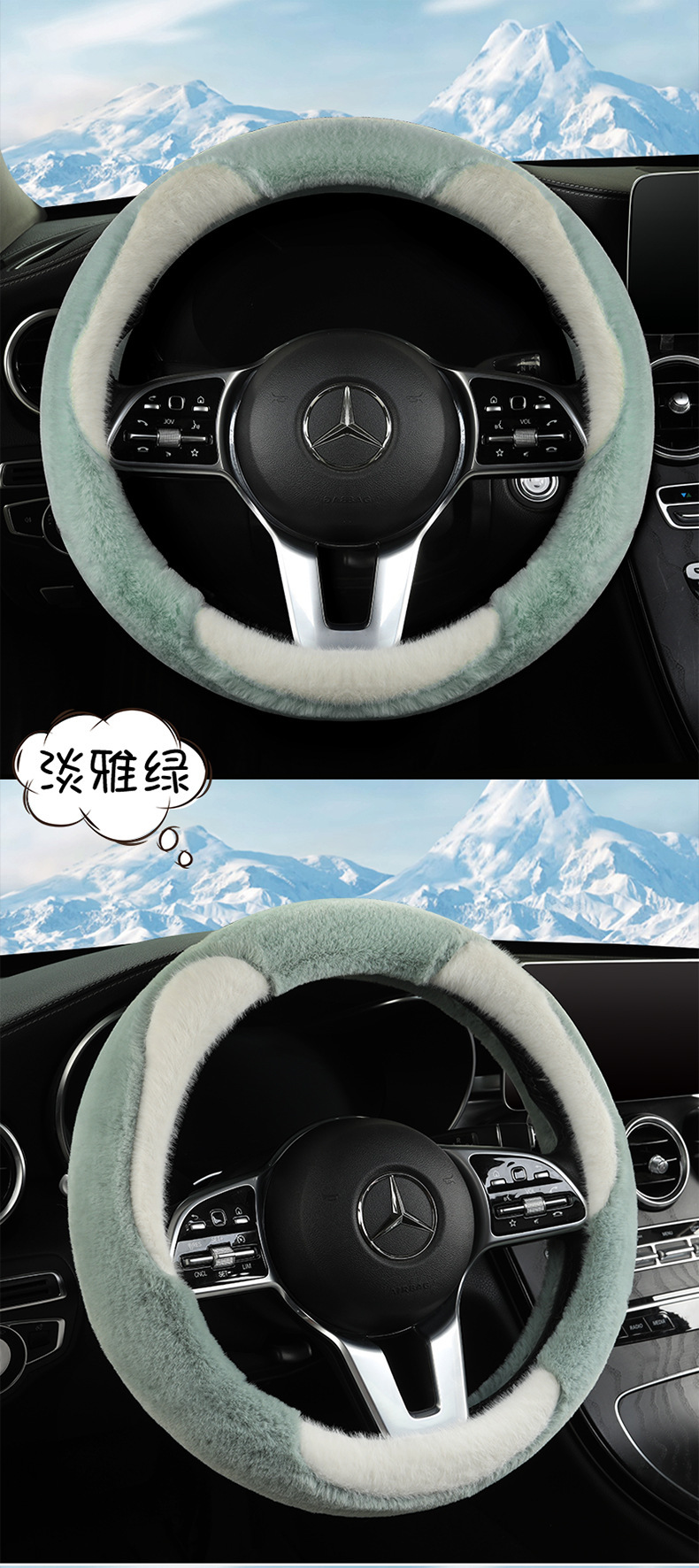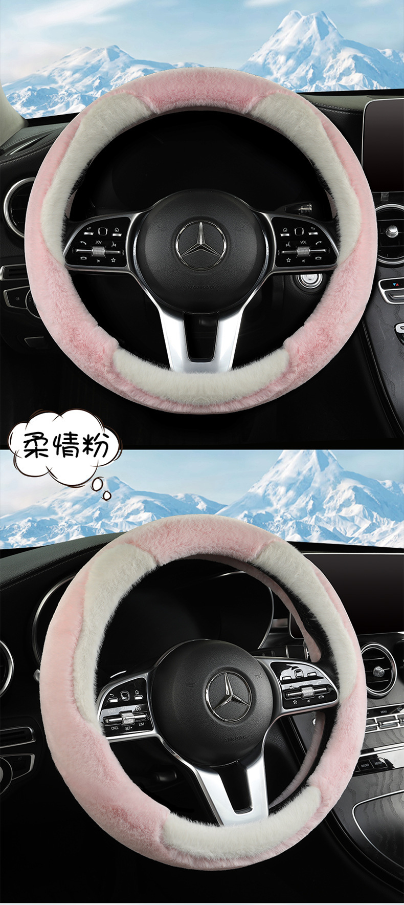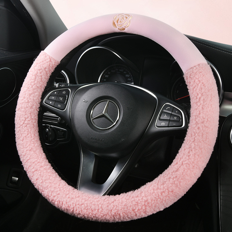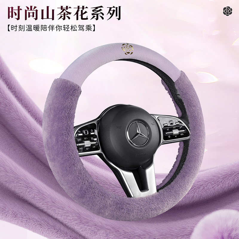冬季毛绒汽车方向盘套网红保暖女款轻奢山茶花内饰冬天短毛绒把套
