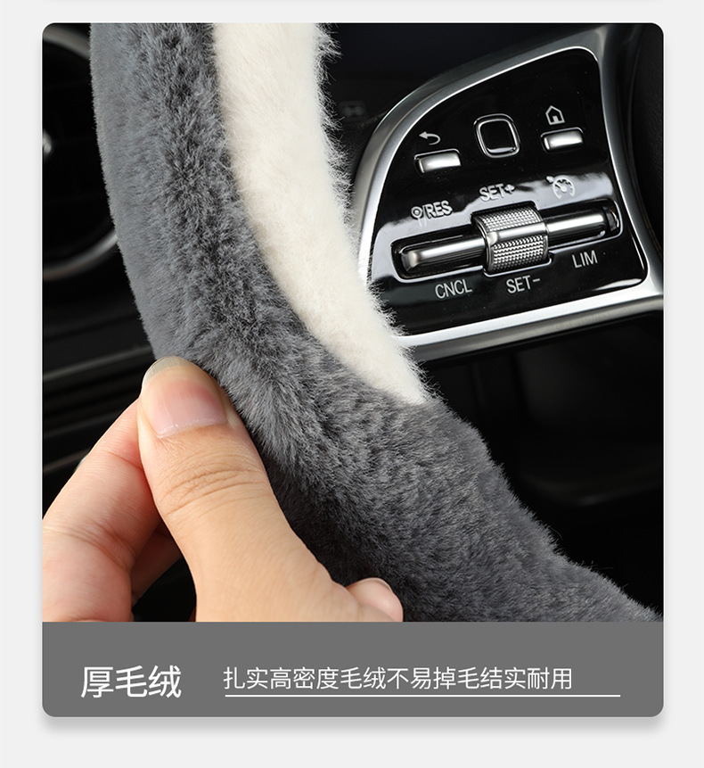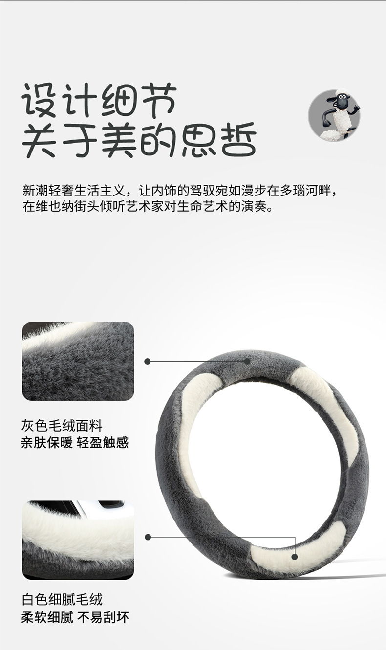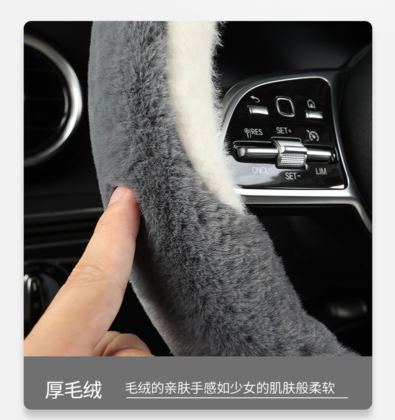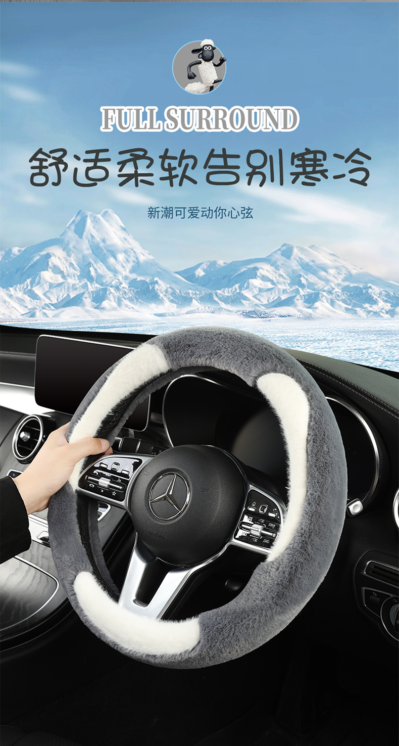 新款汽车方向盘套冬季毛绒山茶花羊羔绒女简约短毛绒保暖车用把套