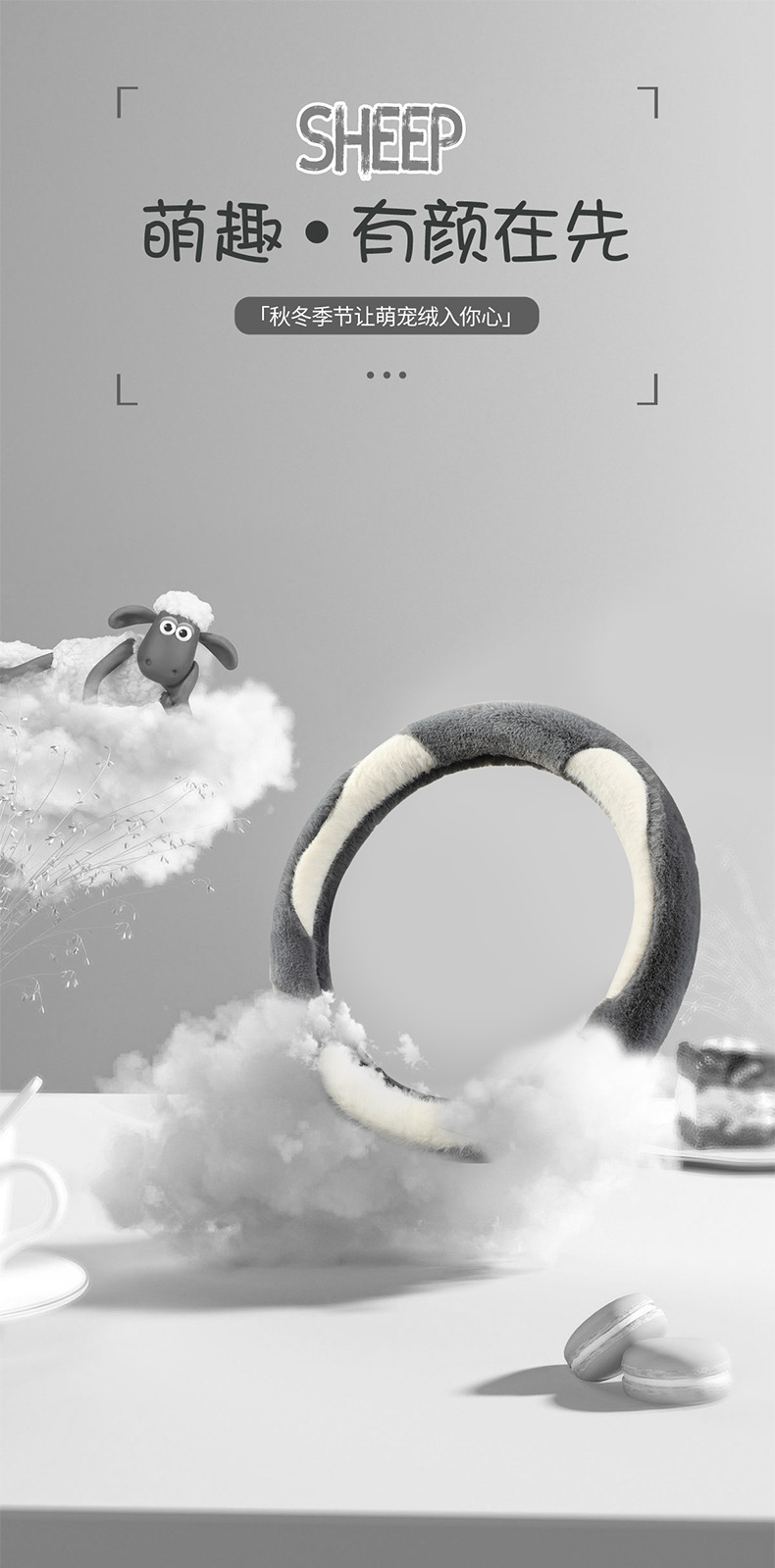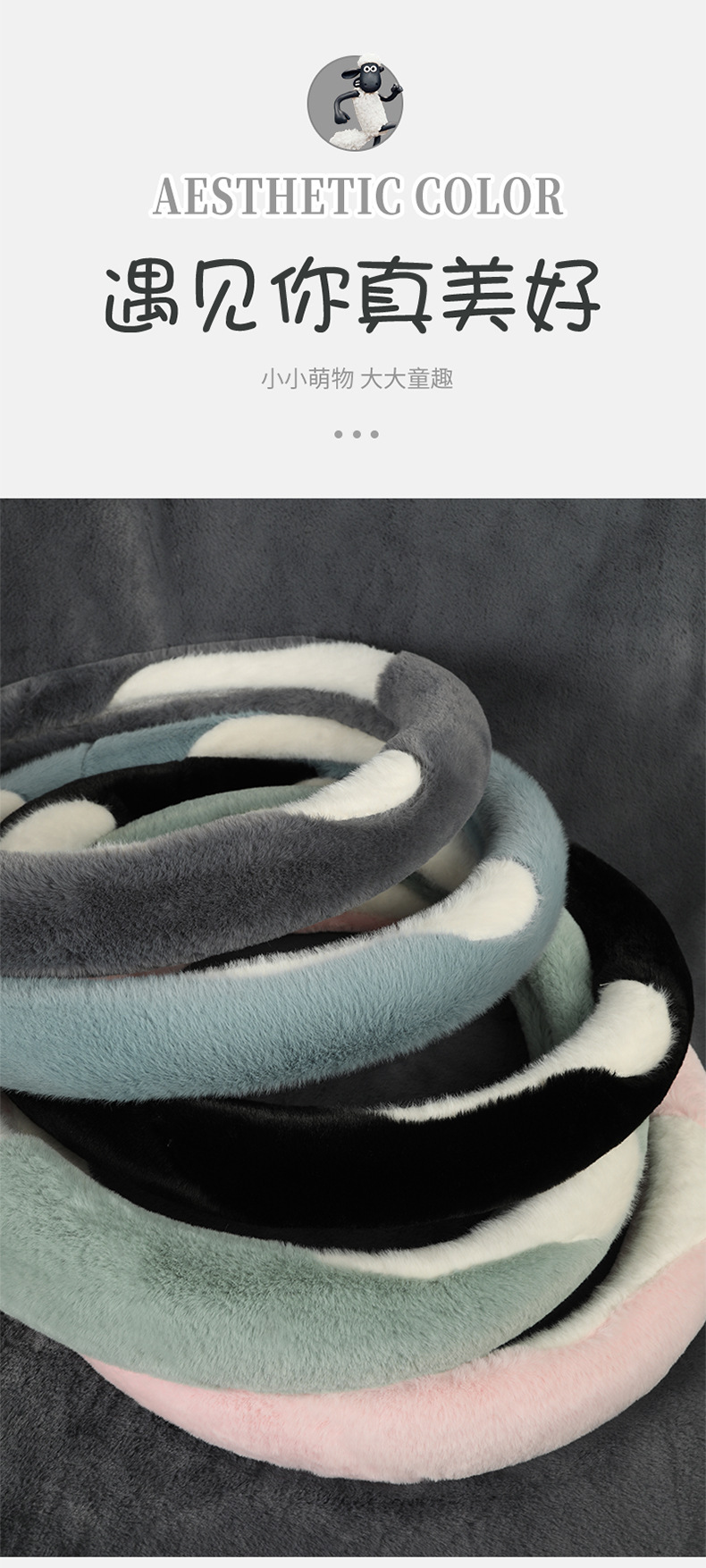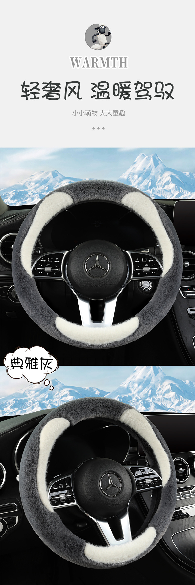 新款汽车方向盘套冬季毛绒山茶花羊羔绒女简约短毛绒保暖车用把套