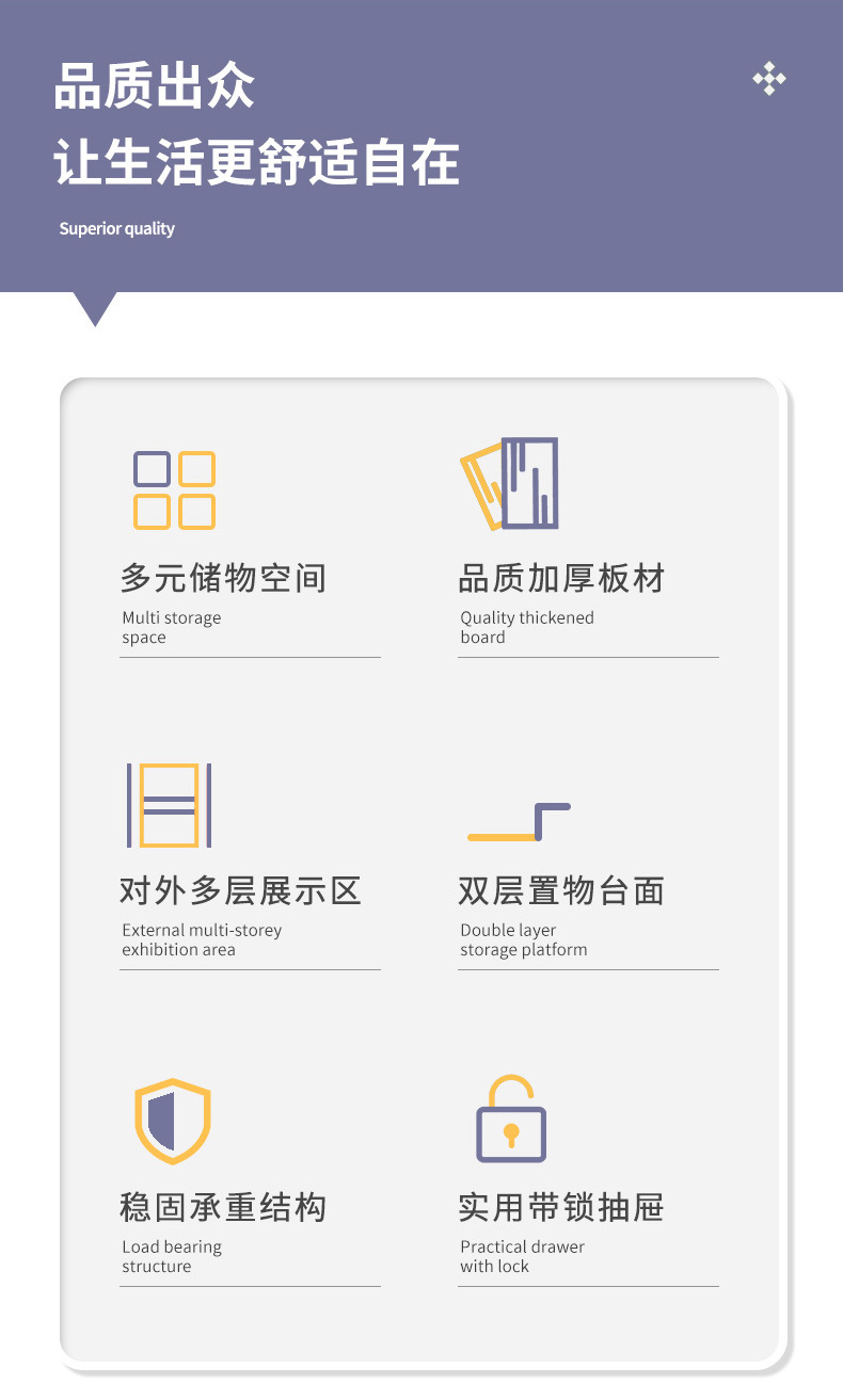 現代のシンプルなサイドキャビネットのリビングルームは壁に寄りかかっています。