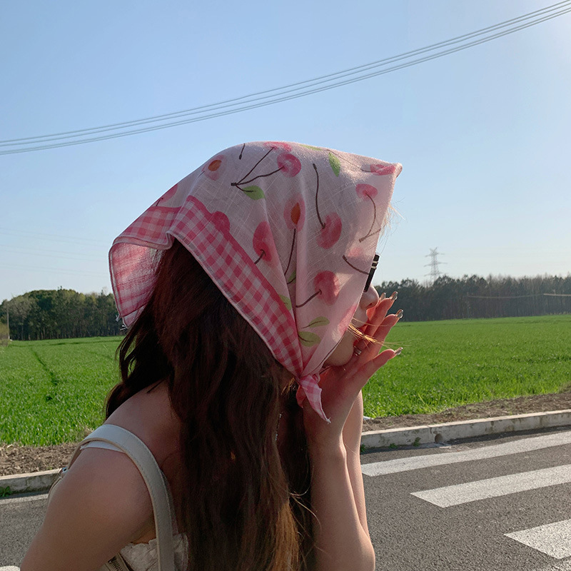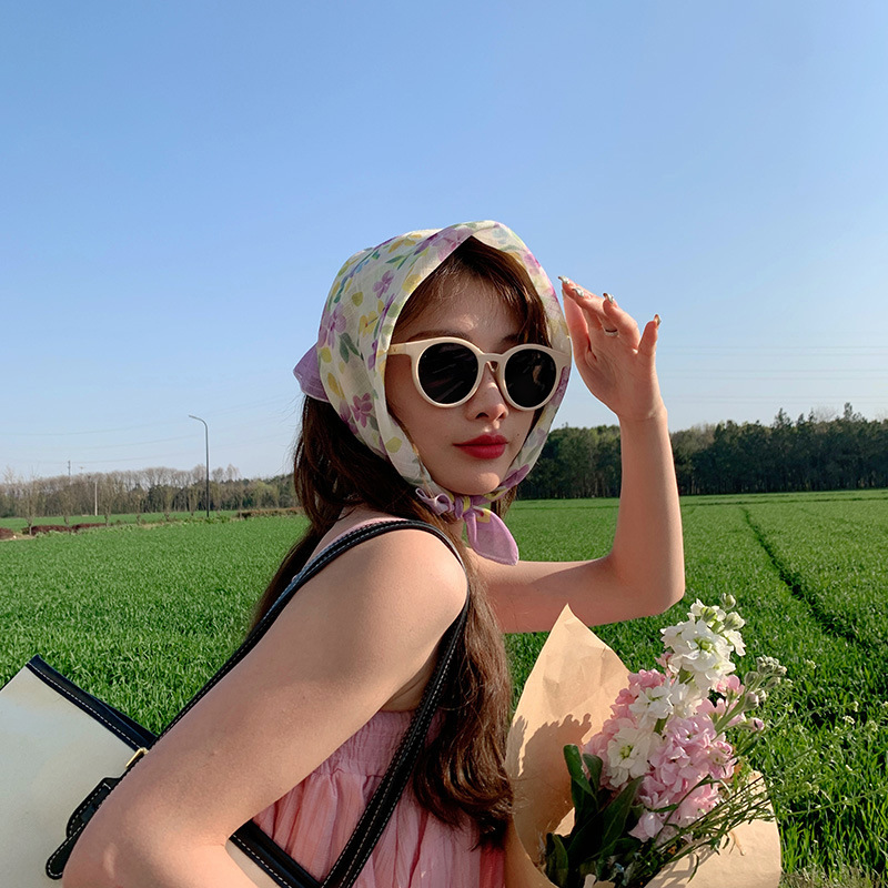 日系オリジナルins小砕花綿麻58小方巾文芸装飾薄い襟巾マフラー包頭多機能