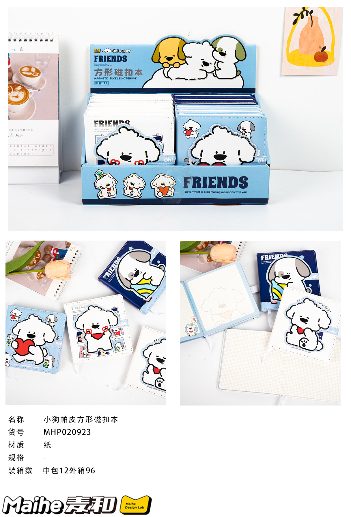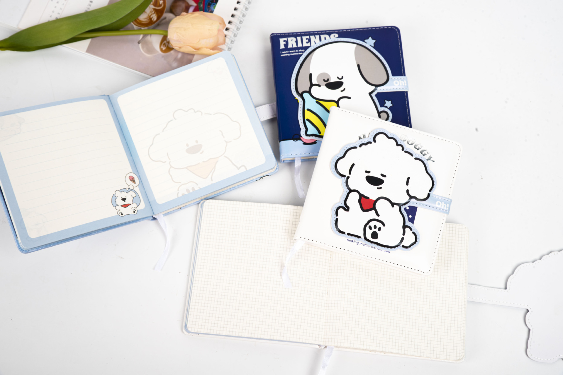 麦と子犬のパーピーの四角形の磁気ボタンのシンプルな小さい清の新米の帳簿の学生の手帳は携帯ノートを持ちます。
