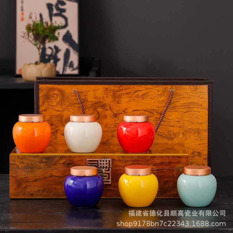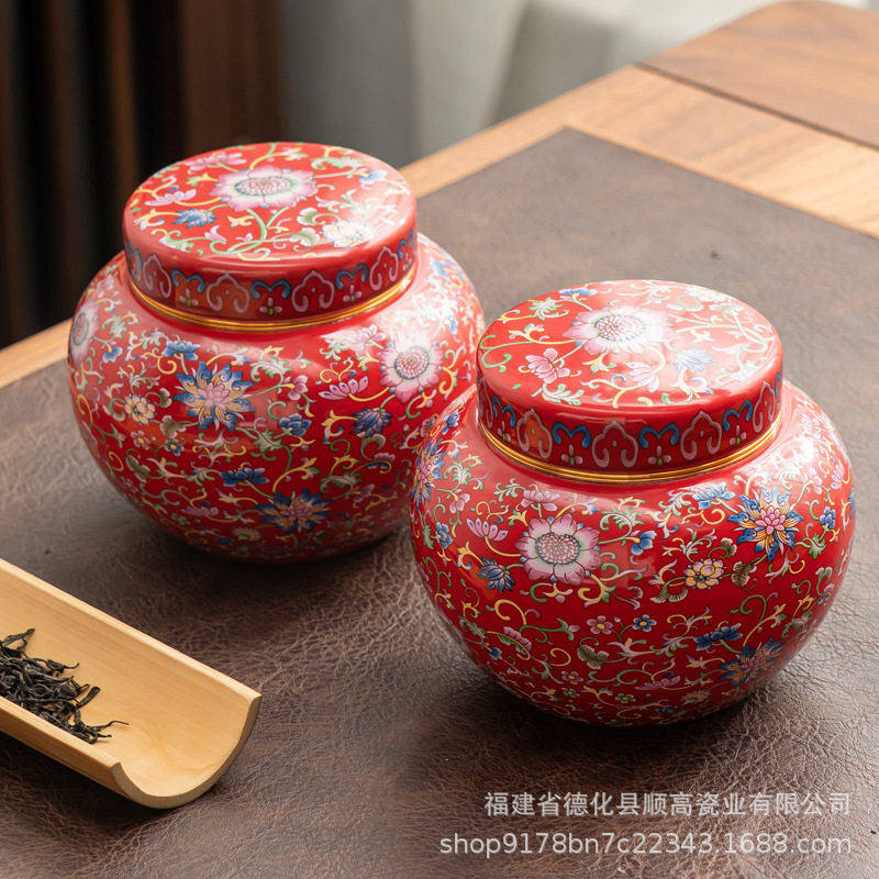 小さな茶葉缶エナメル彩国潮風陶磁器密封缶携帯旅行密封茶缶ミニ缶卸売り印刷