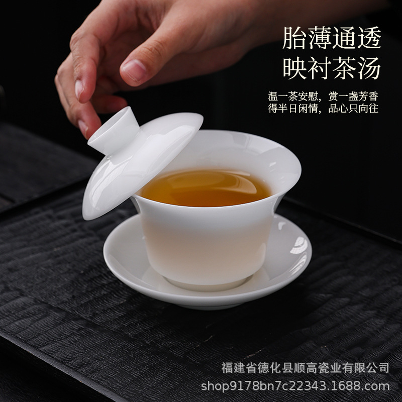 氷種羊脂翡翠白磁ホバリングカバーボウル三才カンフーティーセット中国の高級家庭用シングルティーボウル