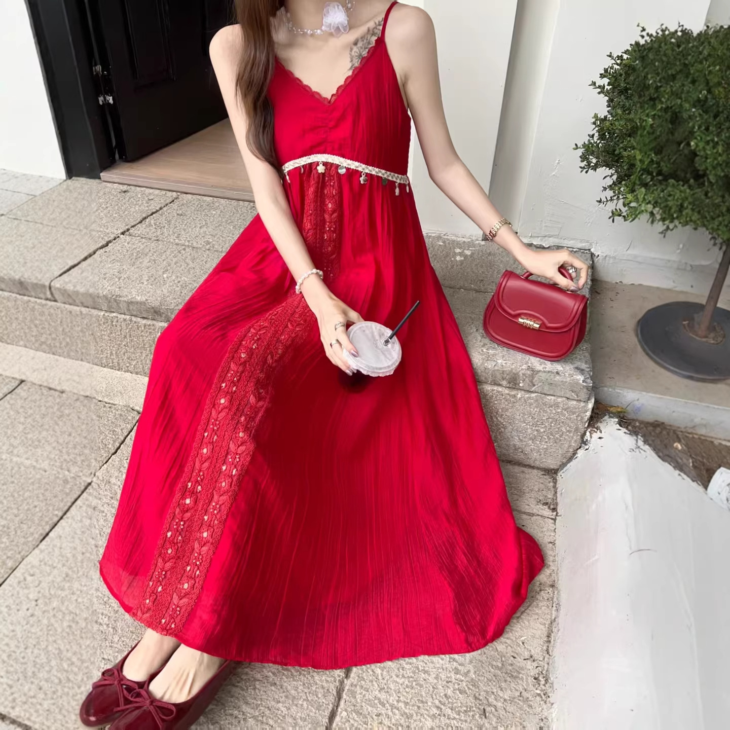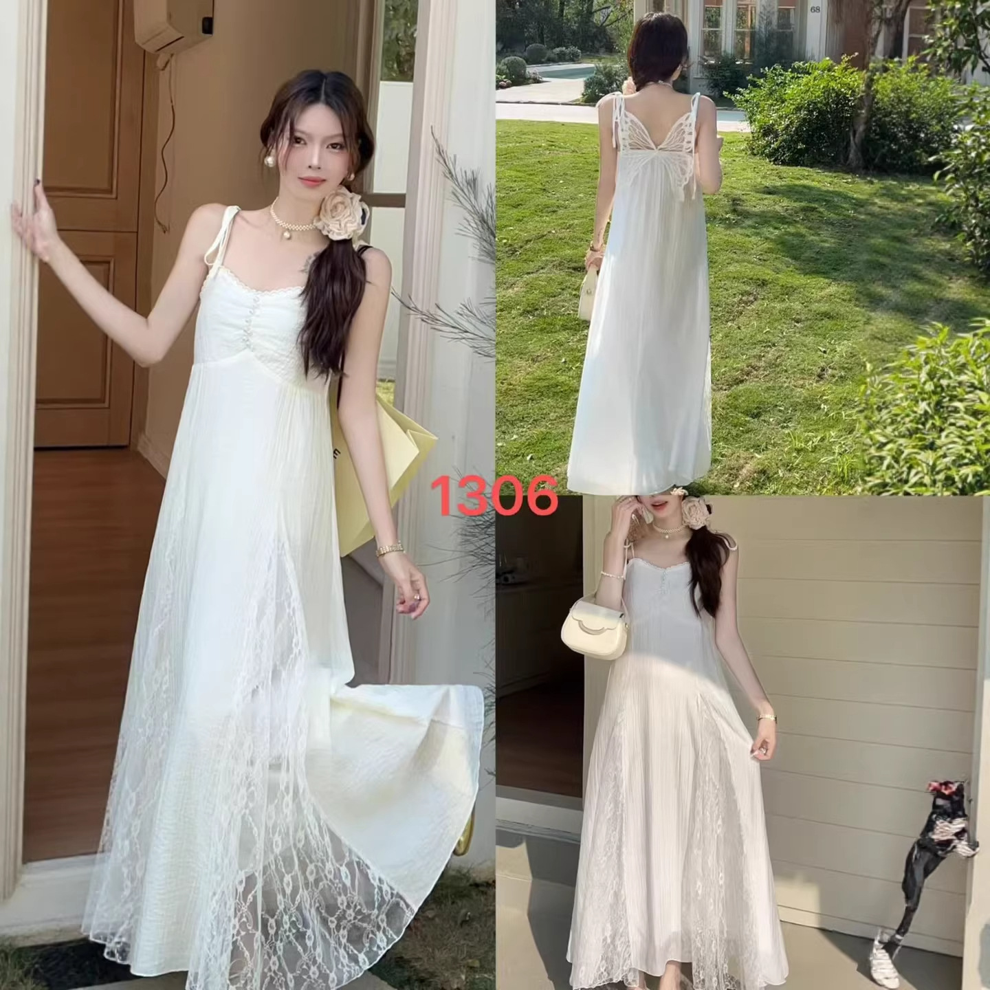 2026夏季新款女装甜辣贴花吊带连衣裙浅色高级感批发货源