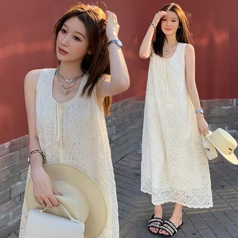 中空タンクトップ女性の夏 2025 新しいフレンチスタイル塩味または甘い韓国スタイルルーズ痩身キキョウロングスカート