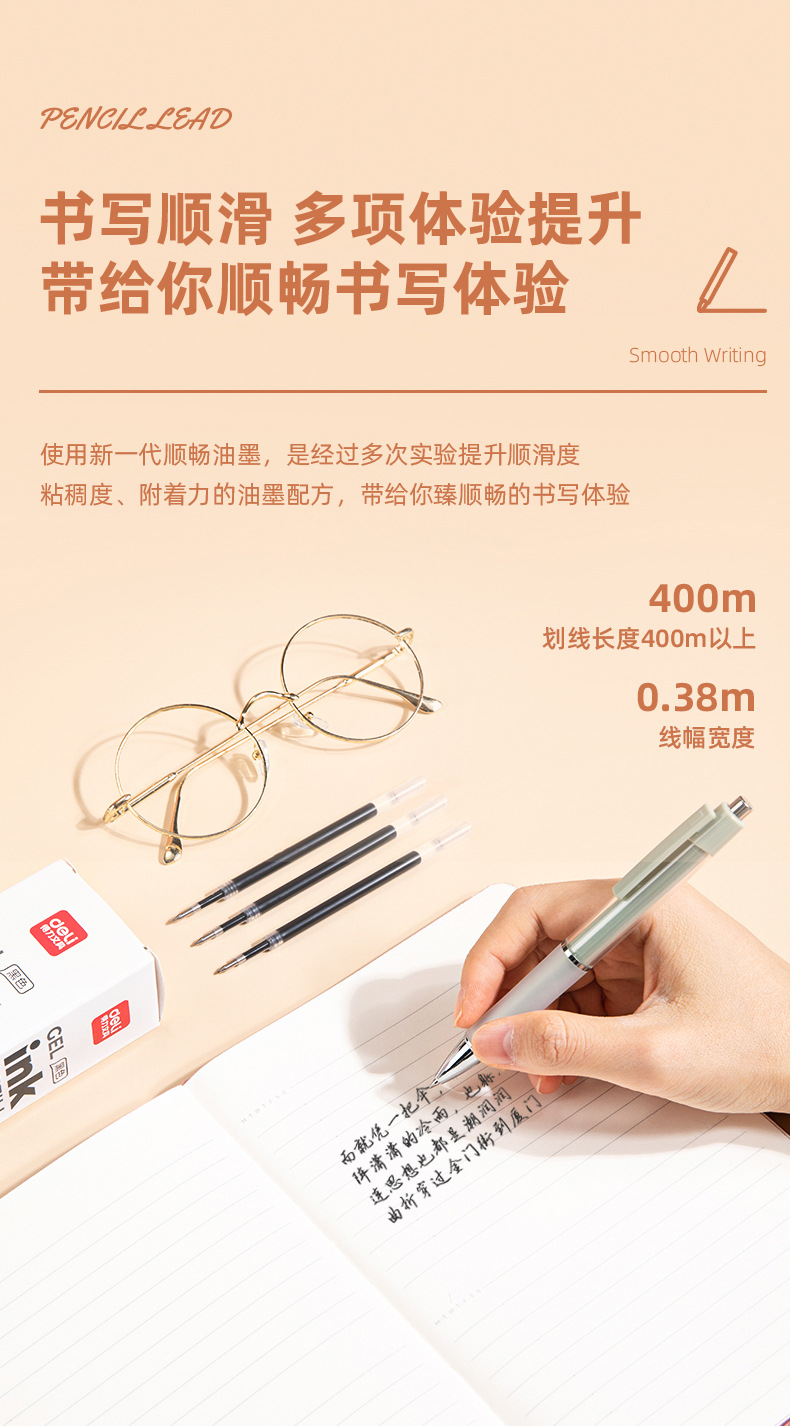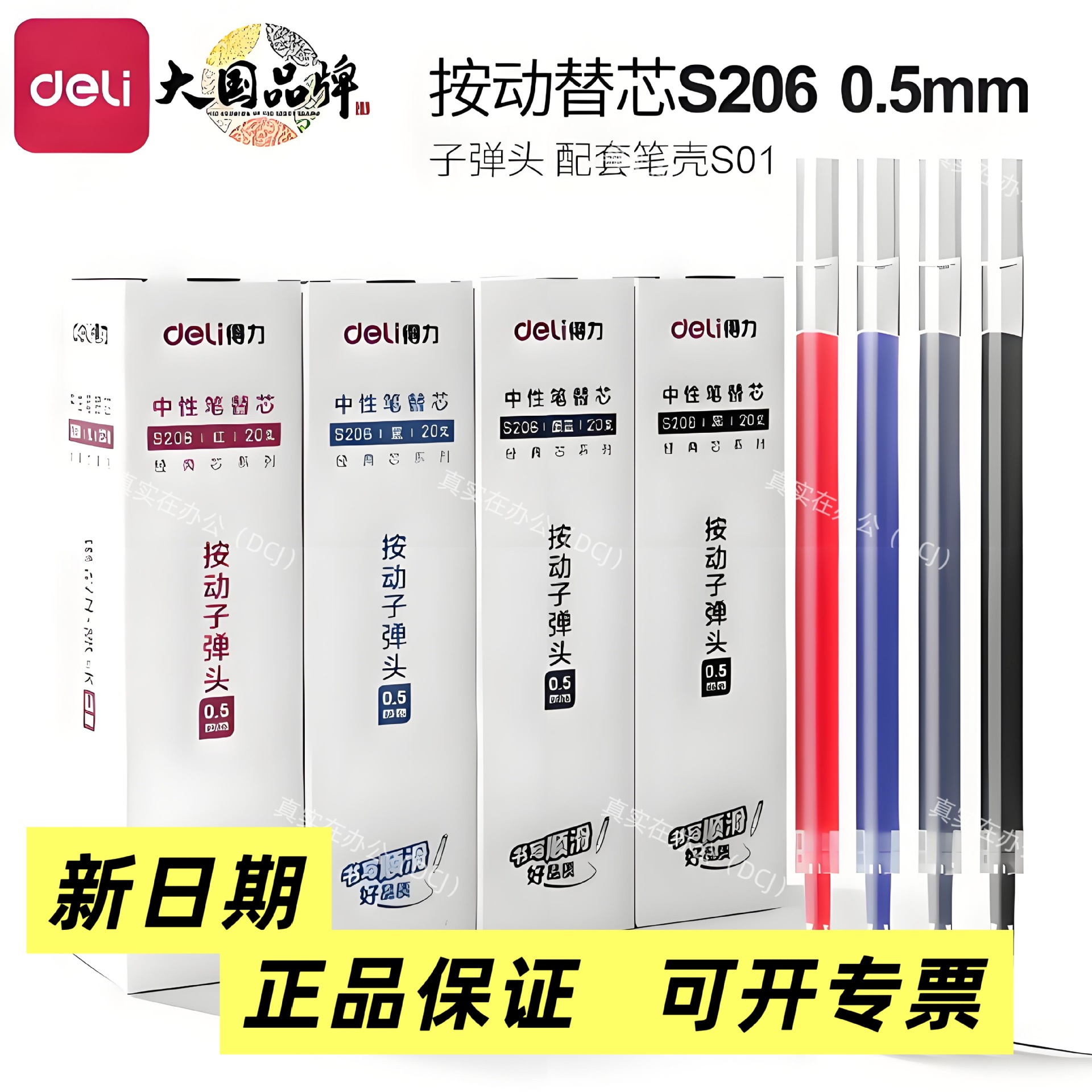 得力按动中性笔芯替芯墨蓝黑签字笔0.5子弹头速干大容量笔芯批发