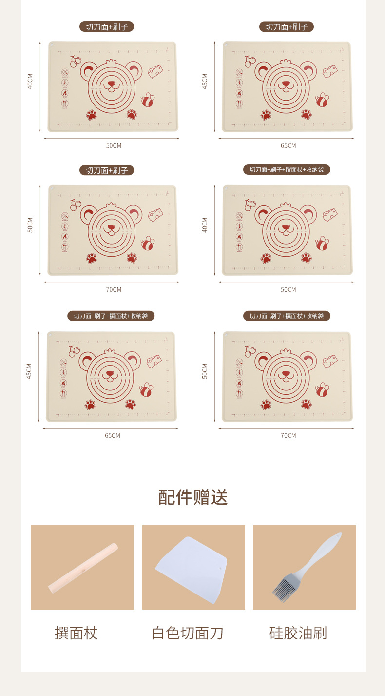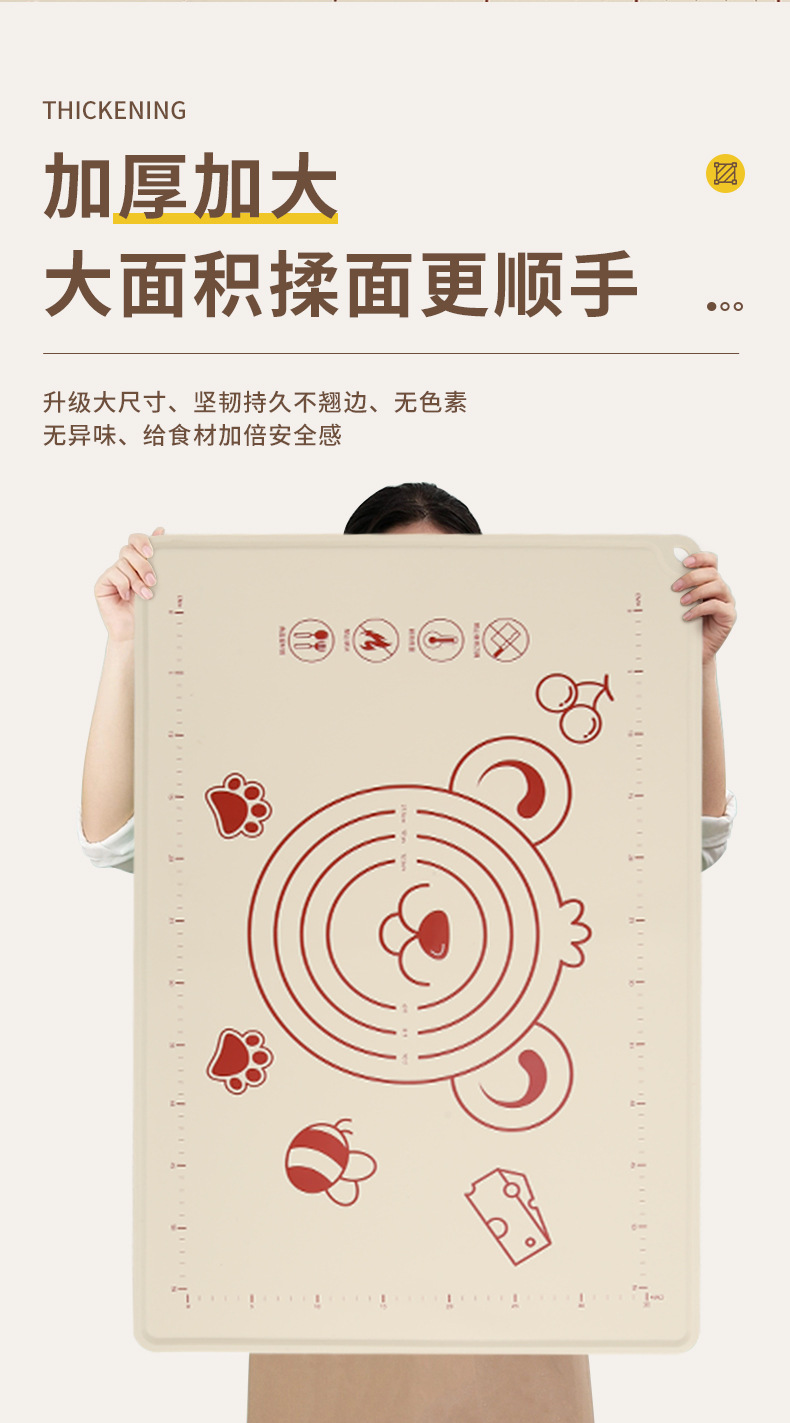 食品级不粘揉面垫子可爱卡通小熊硅胶垫大号加厚擀面皮垫烘焙垫