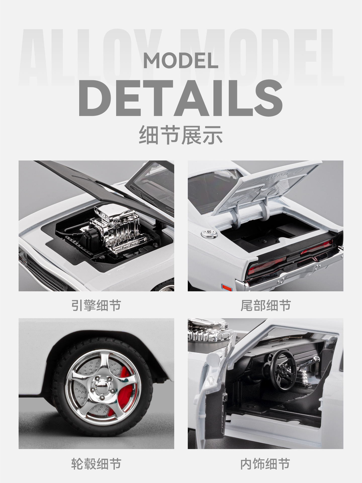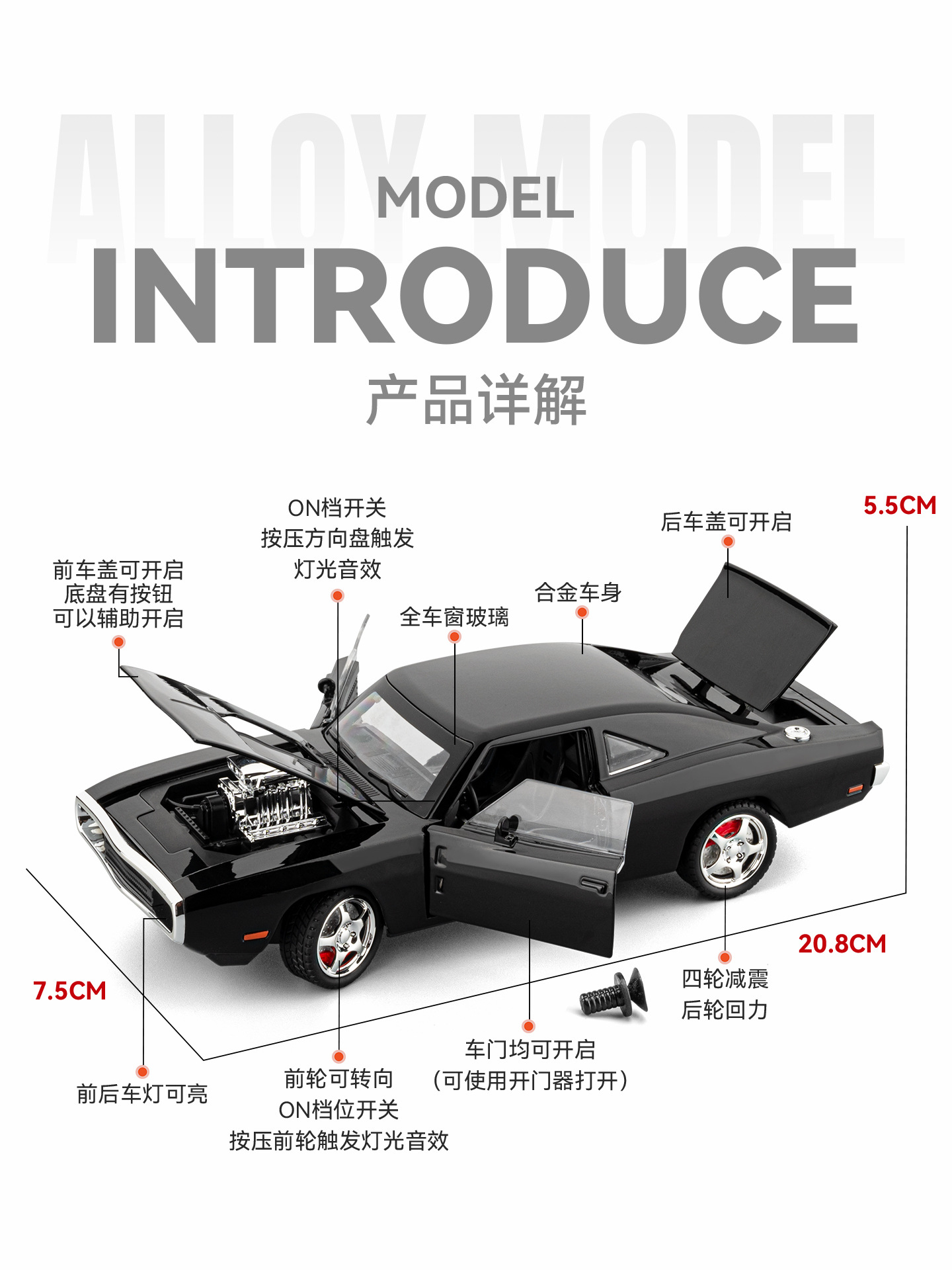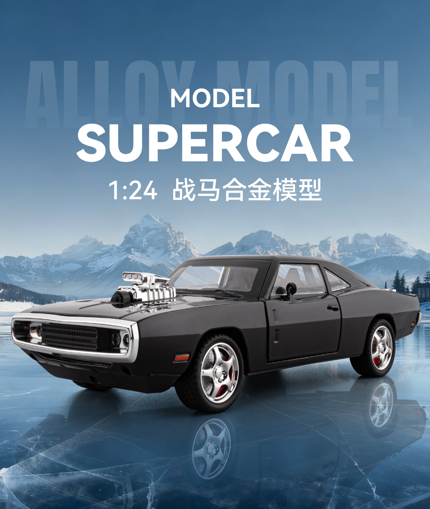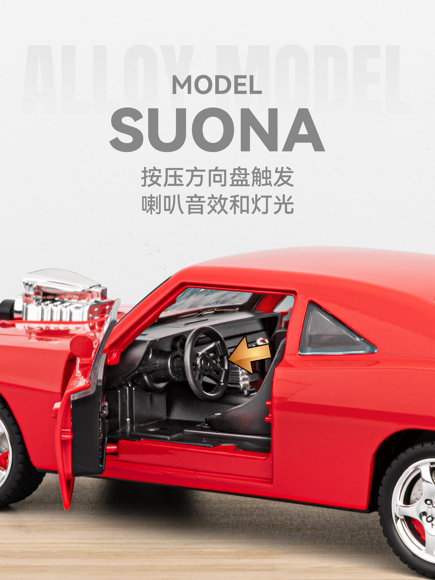 1:24道奇战马1970肌肉车合金声光回力四轮避震前轮转向汽车模型车