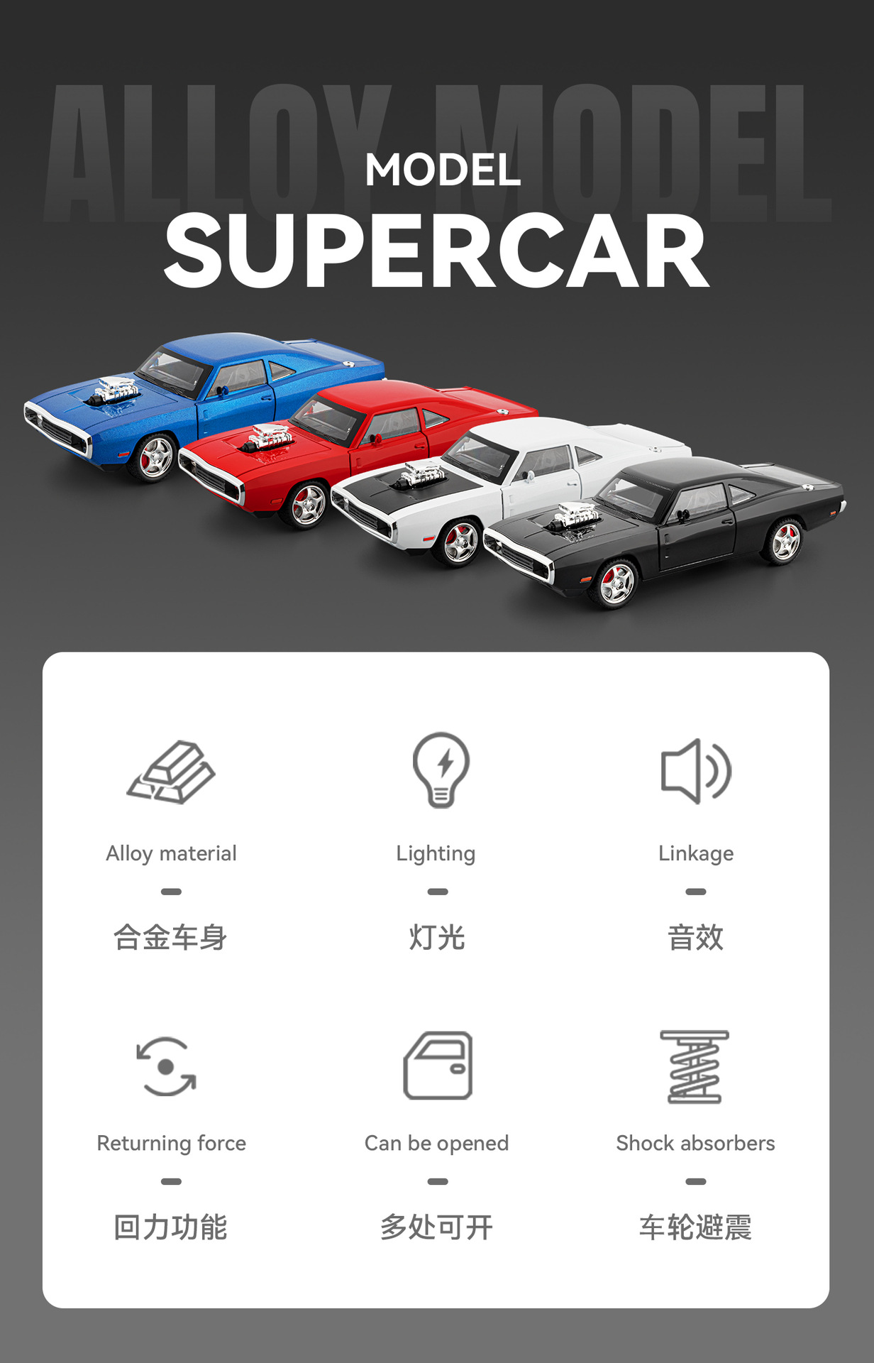 散装 建元系列1:32速7道奇挑战者肌肉车合金模型回力声光汽车玩具