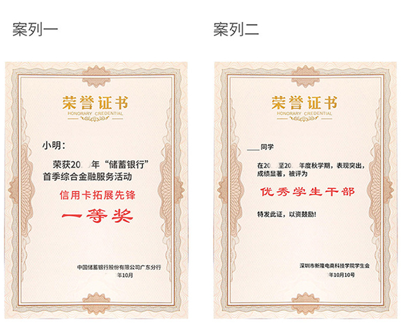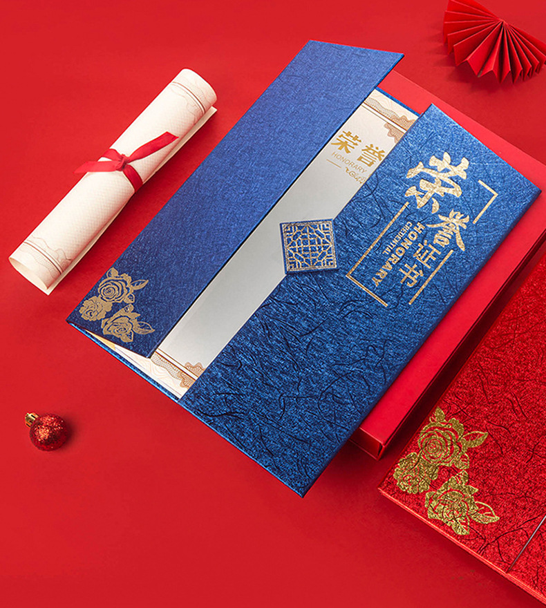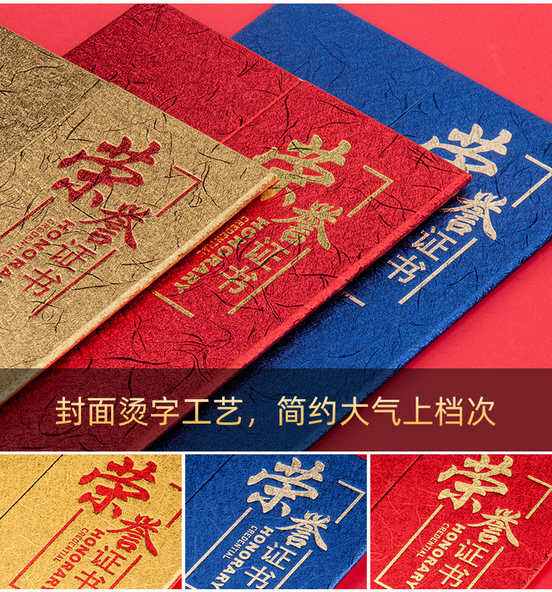 A4荣誉证书三折聘书外壳封皮奖状证书定制颁奖获奖结业证书高级感