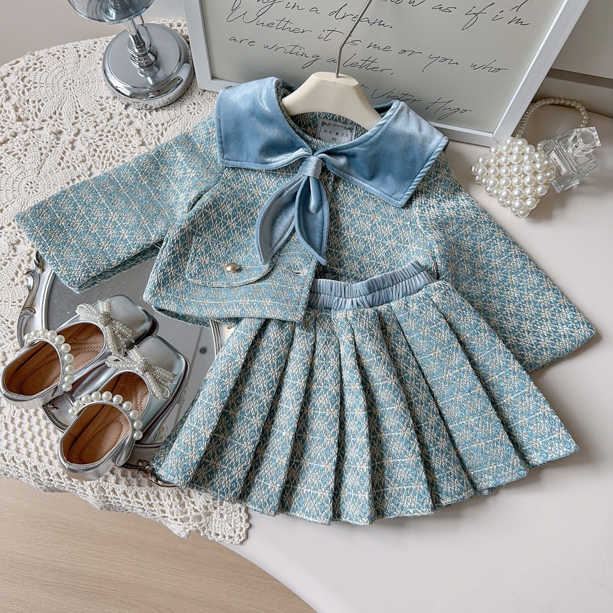 韩式风女童小香风套装春秋季新款洋气时尚女宝外套百褶裙两件套