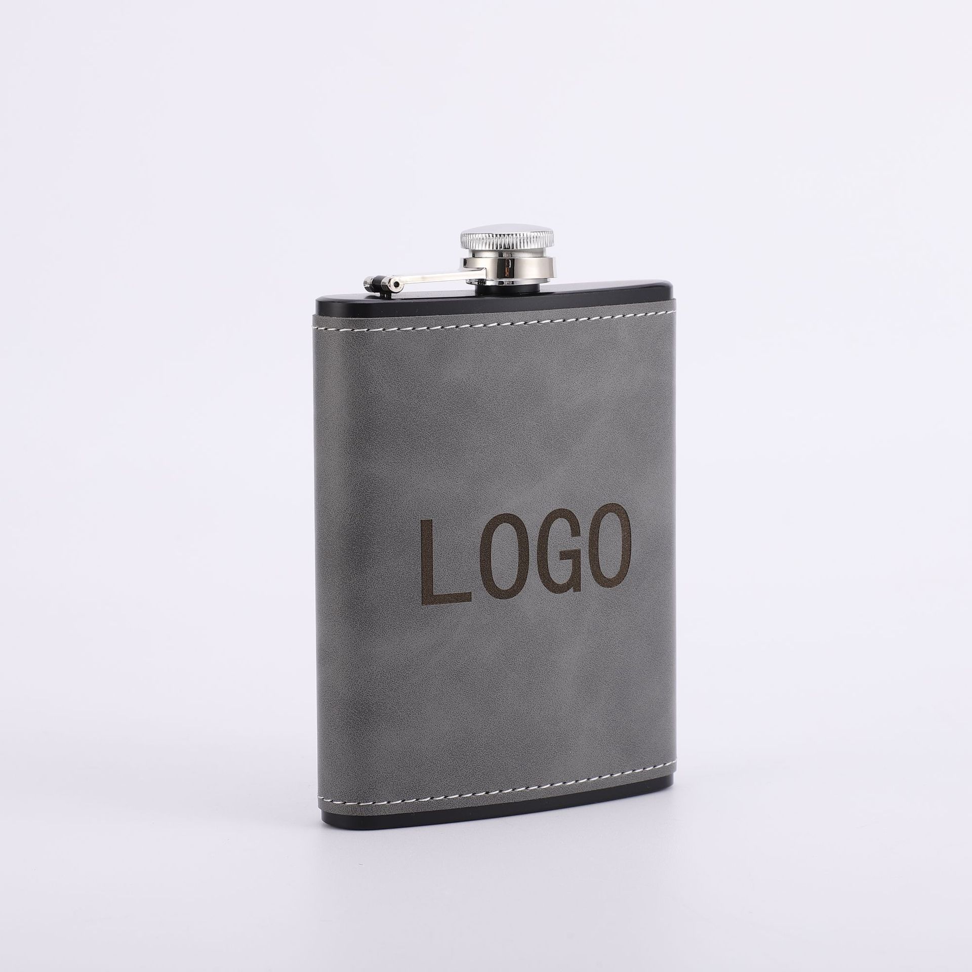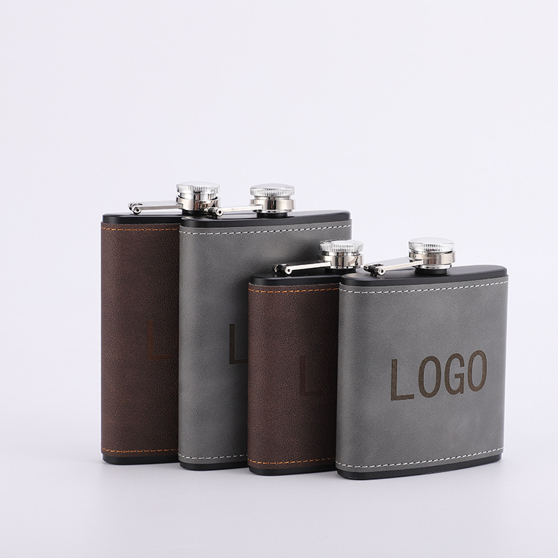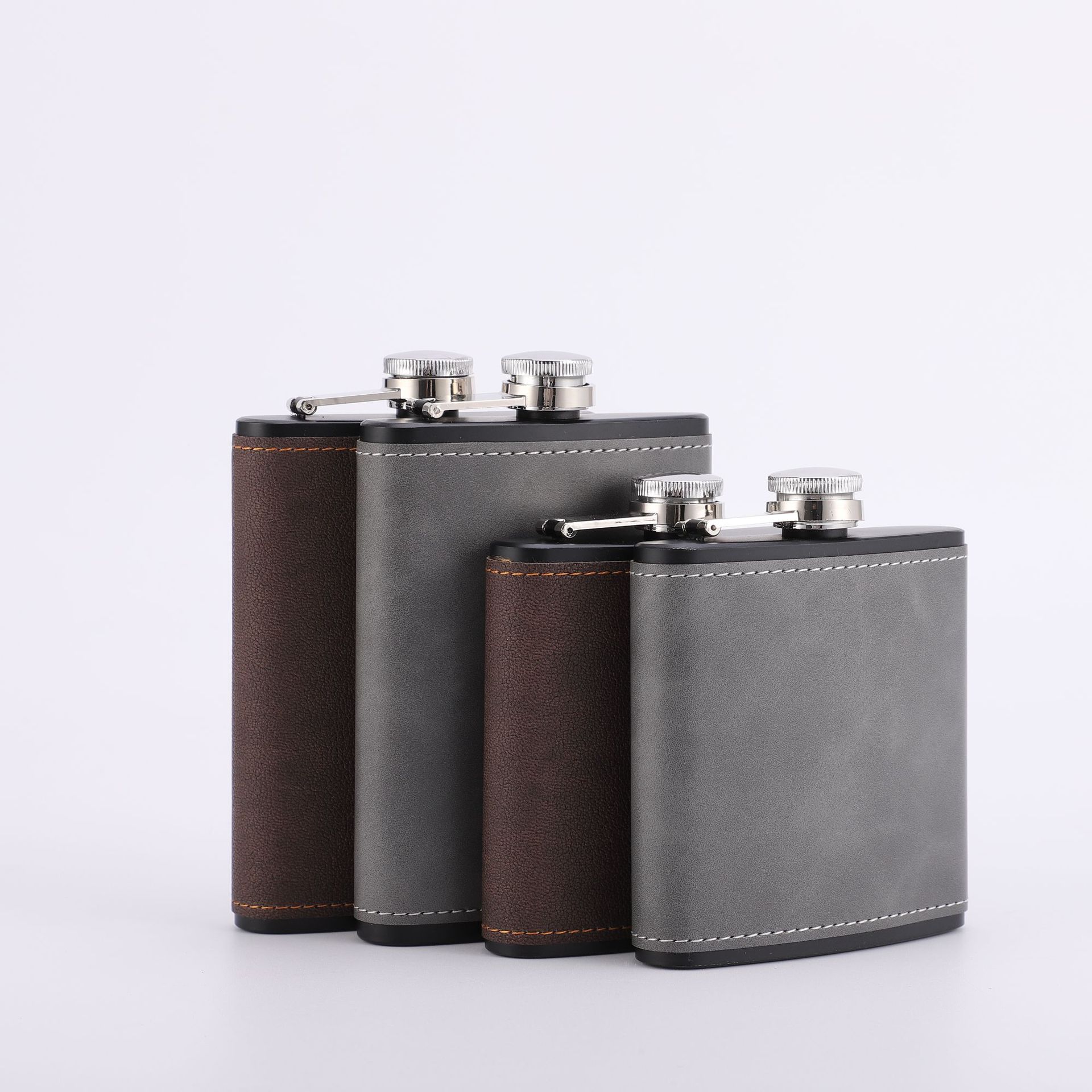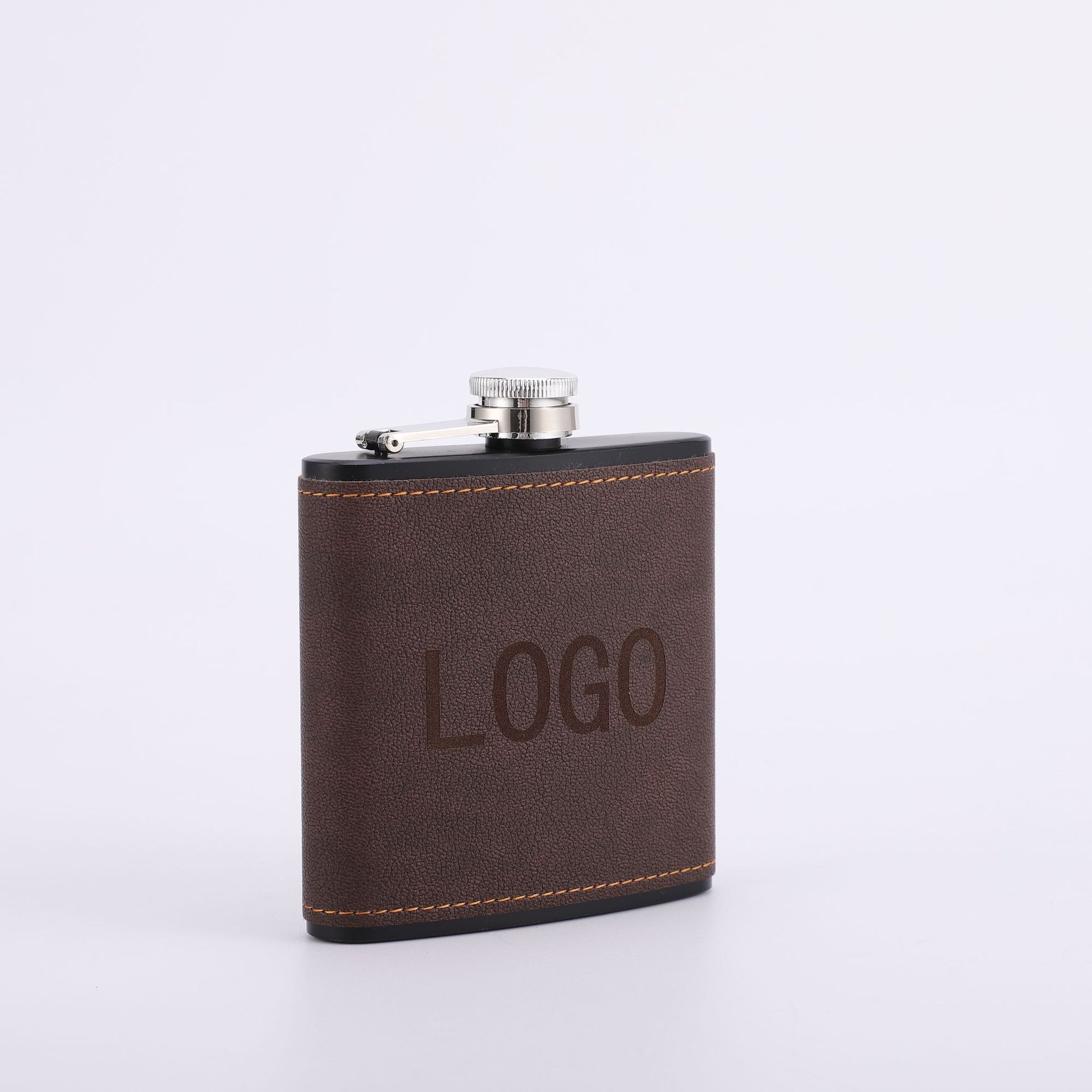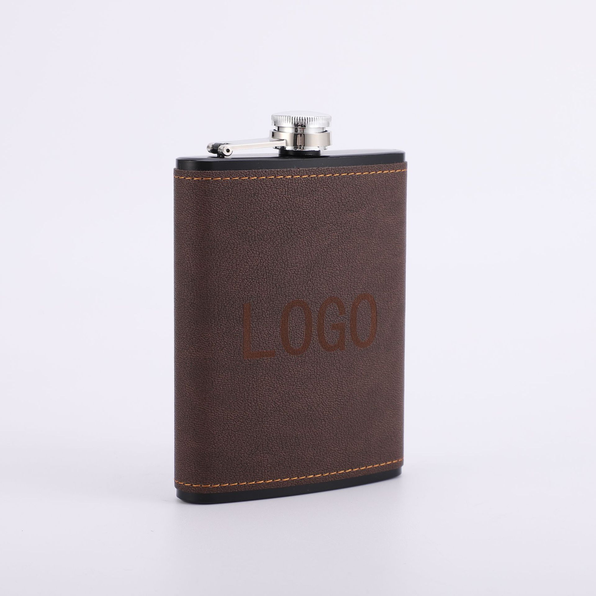 厂家供应不锈钢酒壶激光雕刻皮革随身便携户外小酒壶瓶礼盒