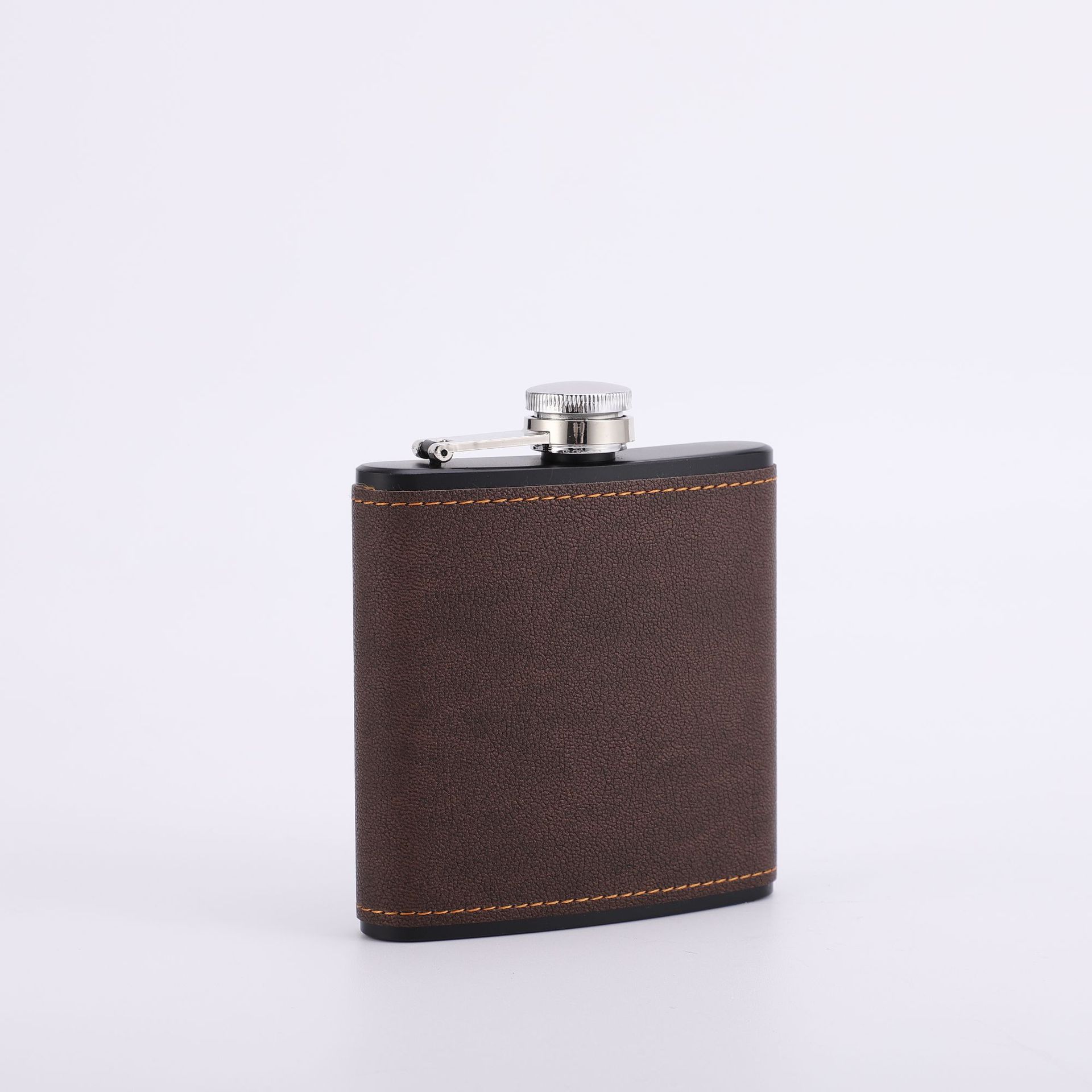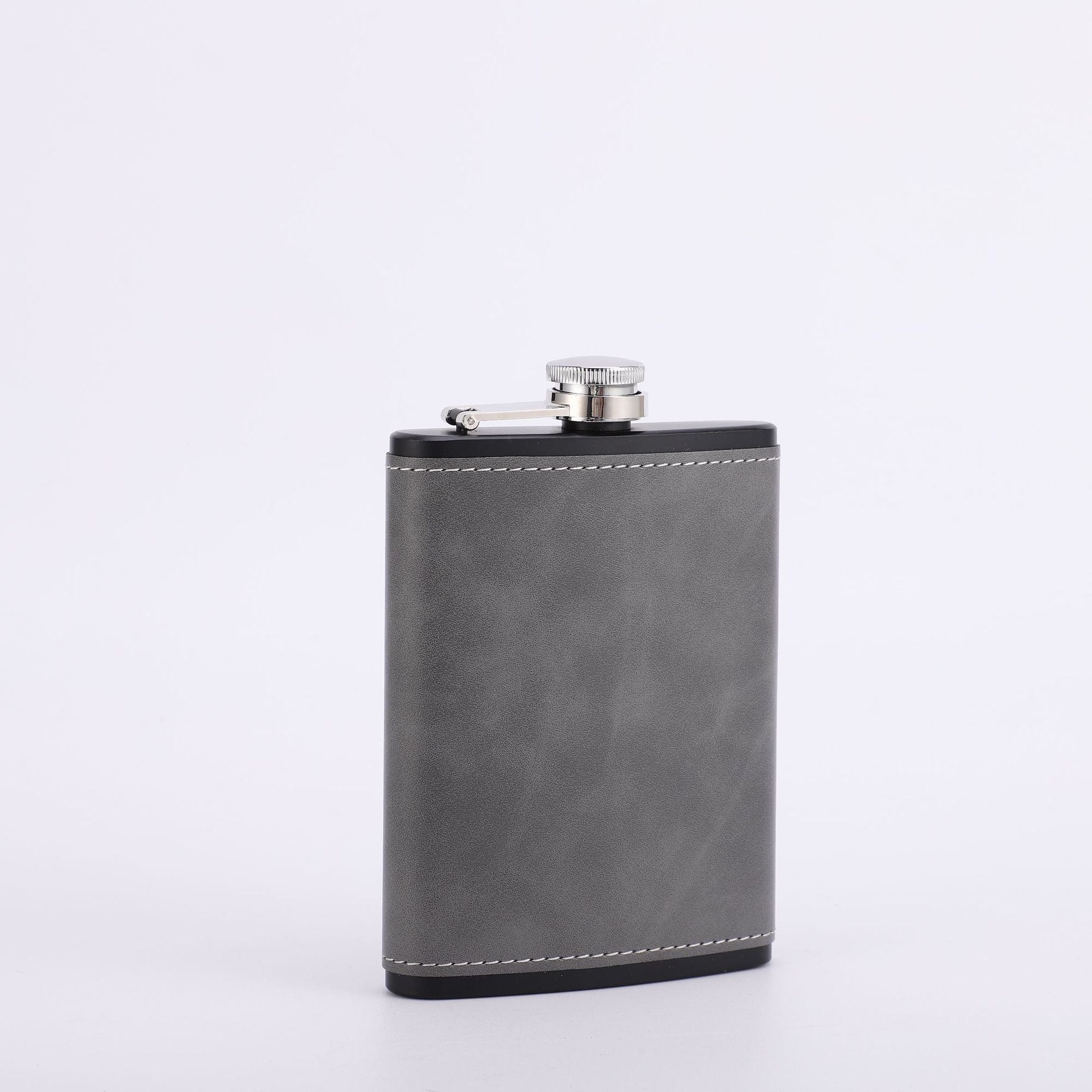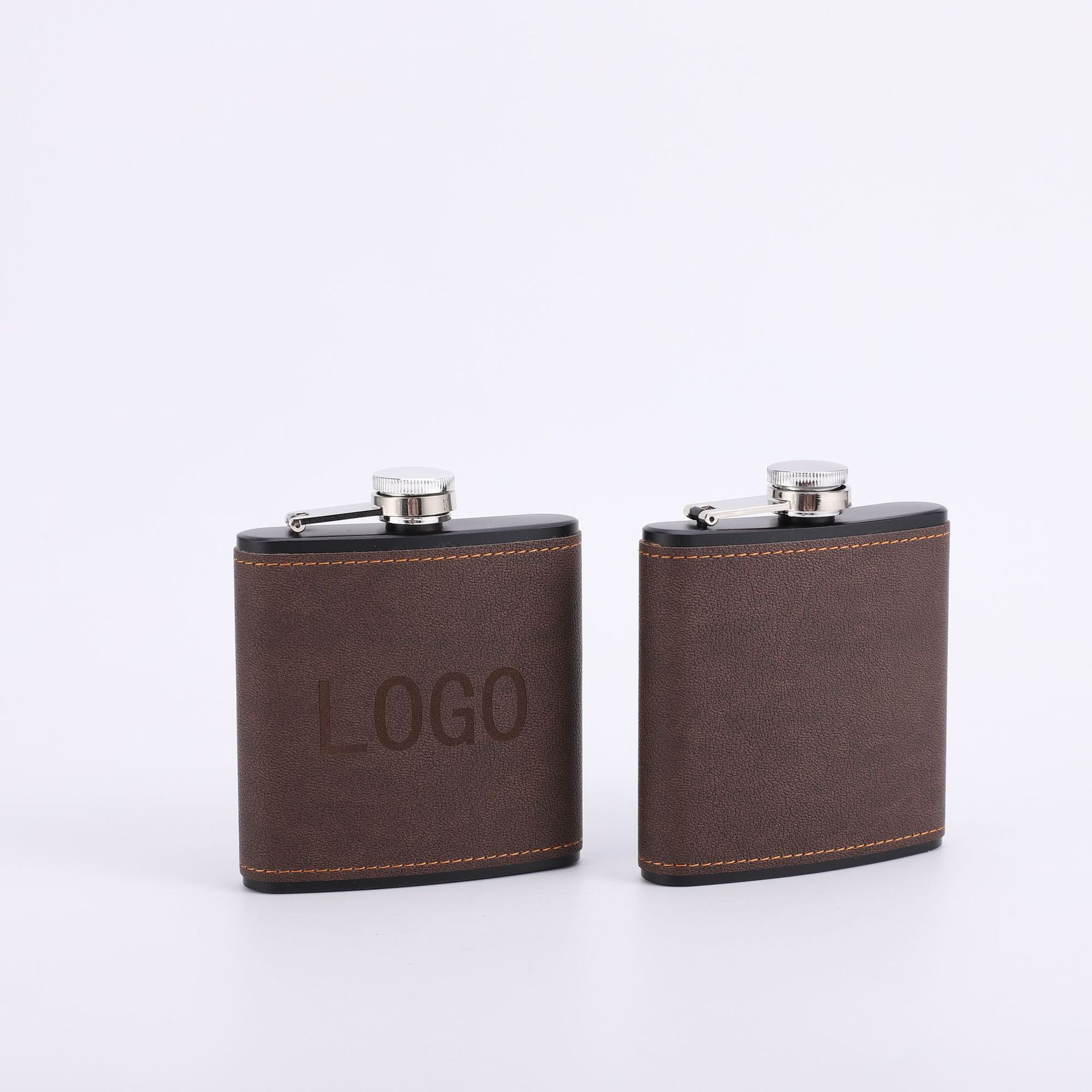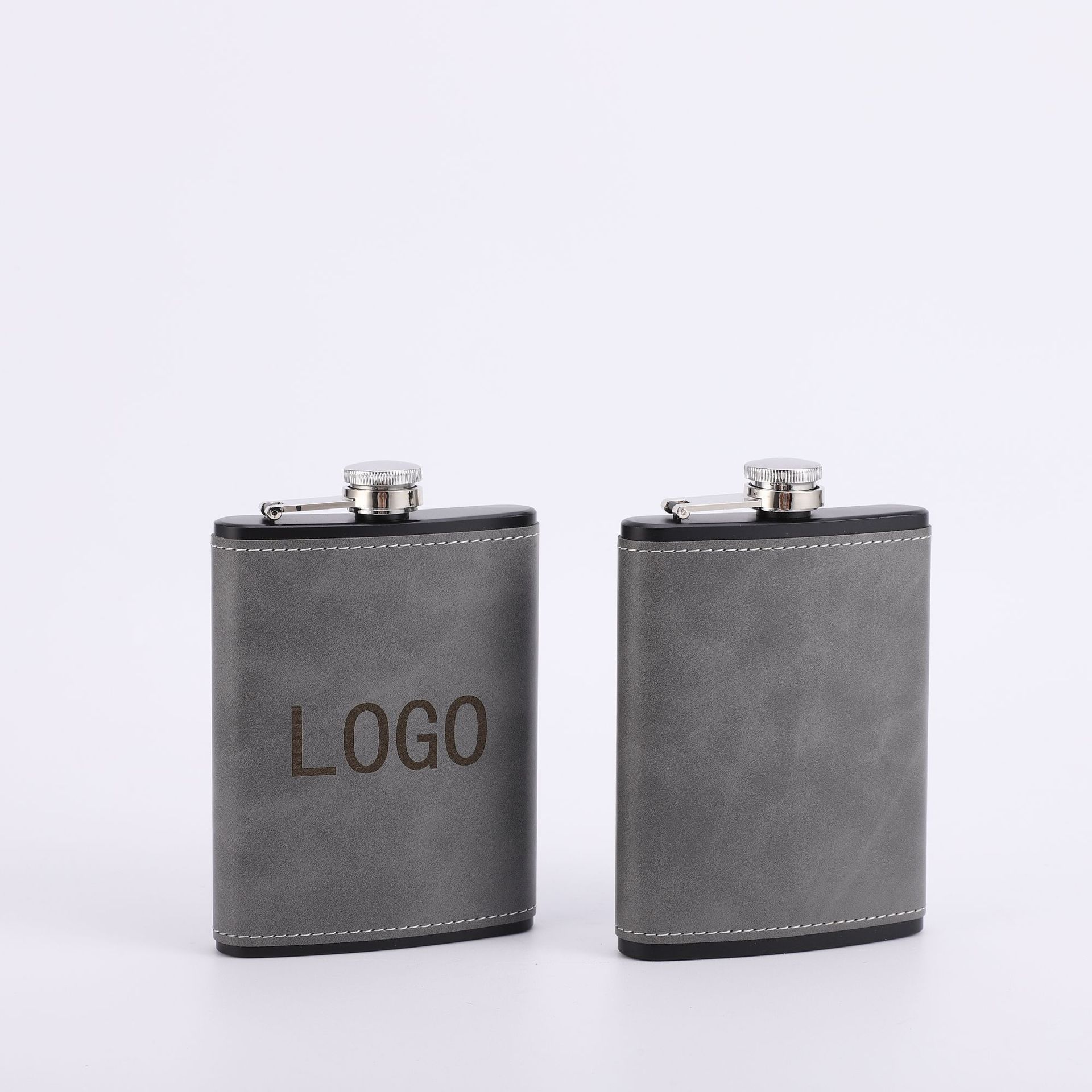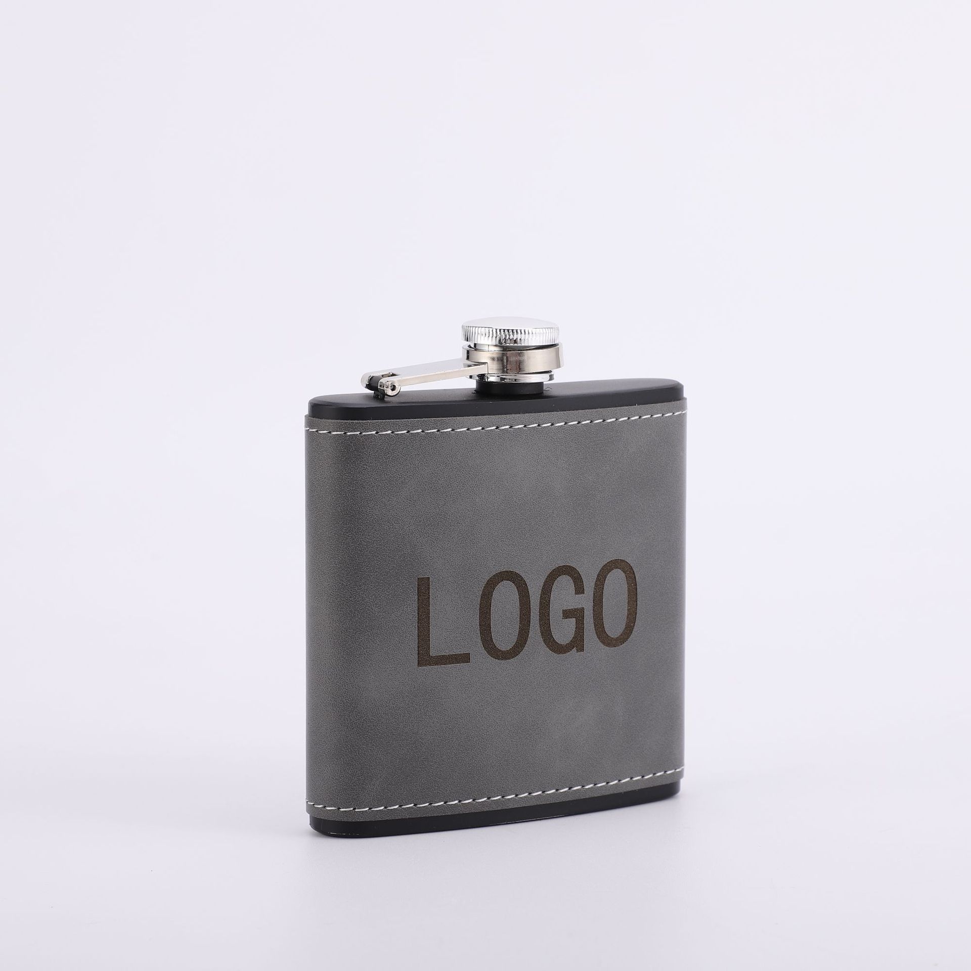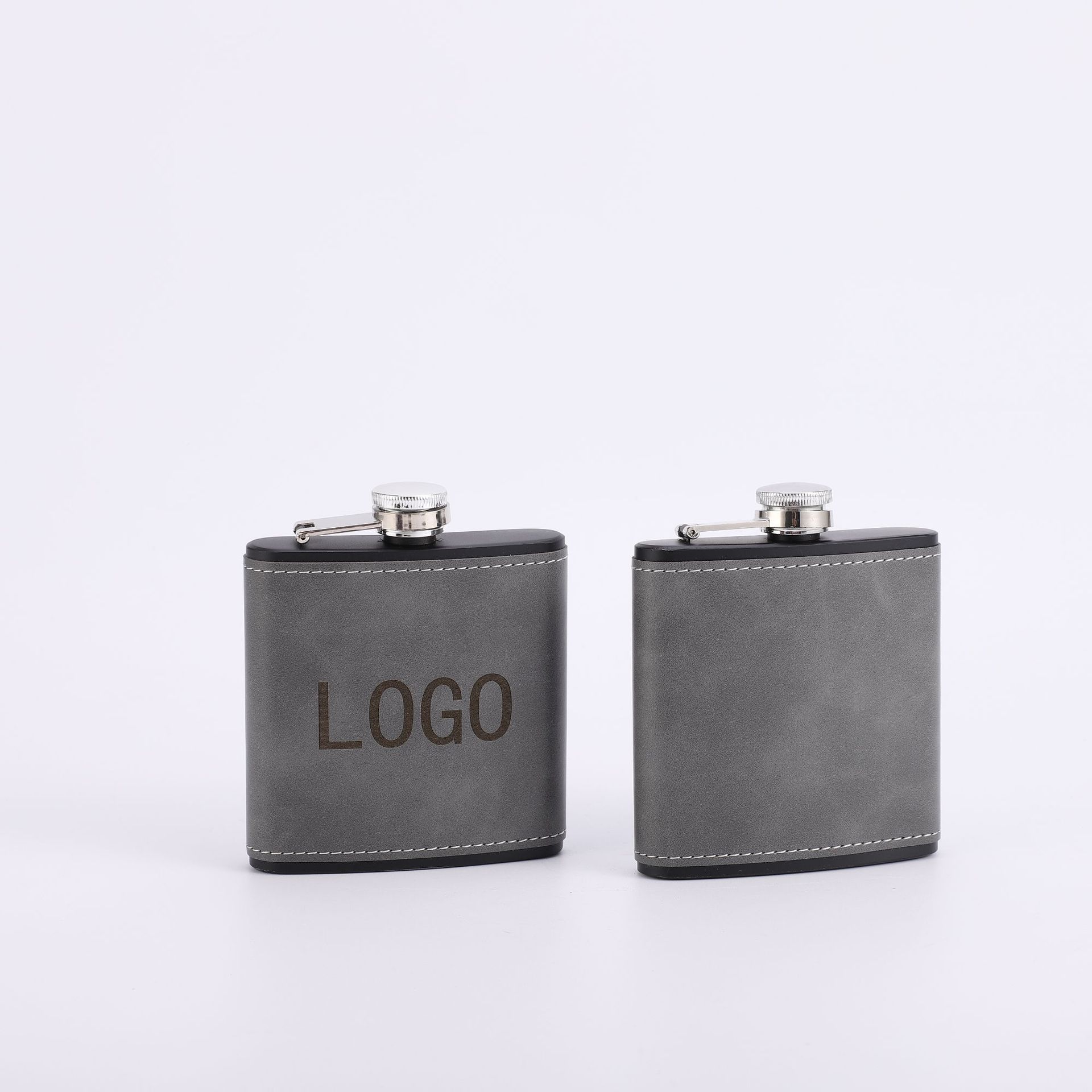 厂家供应不锈钢酒壶激光雕刻皮革随身便携户外小酒壶瓶礼盒