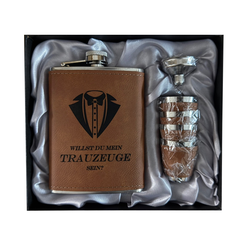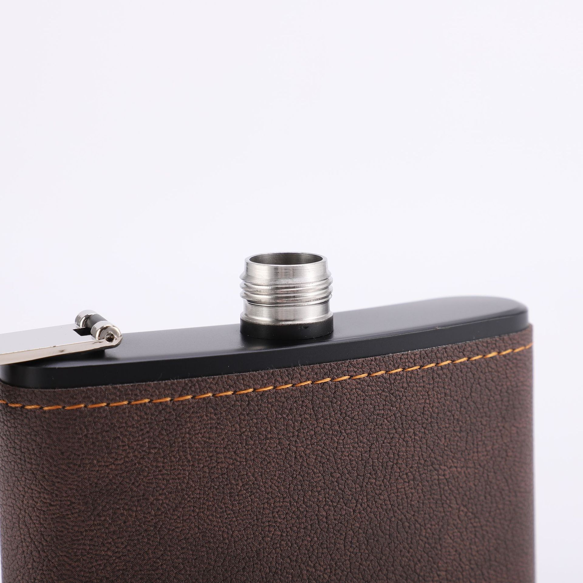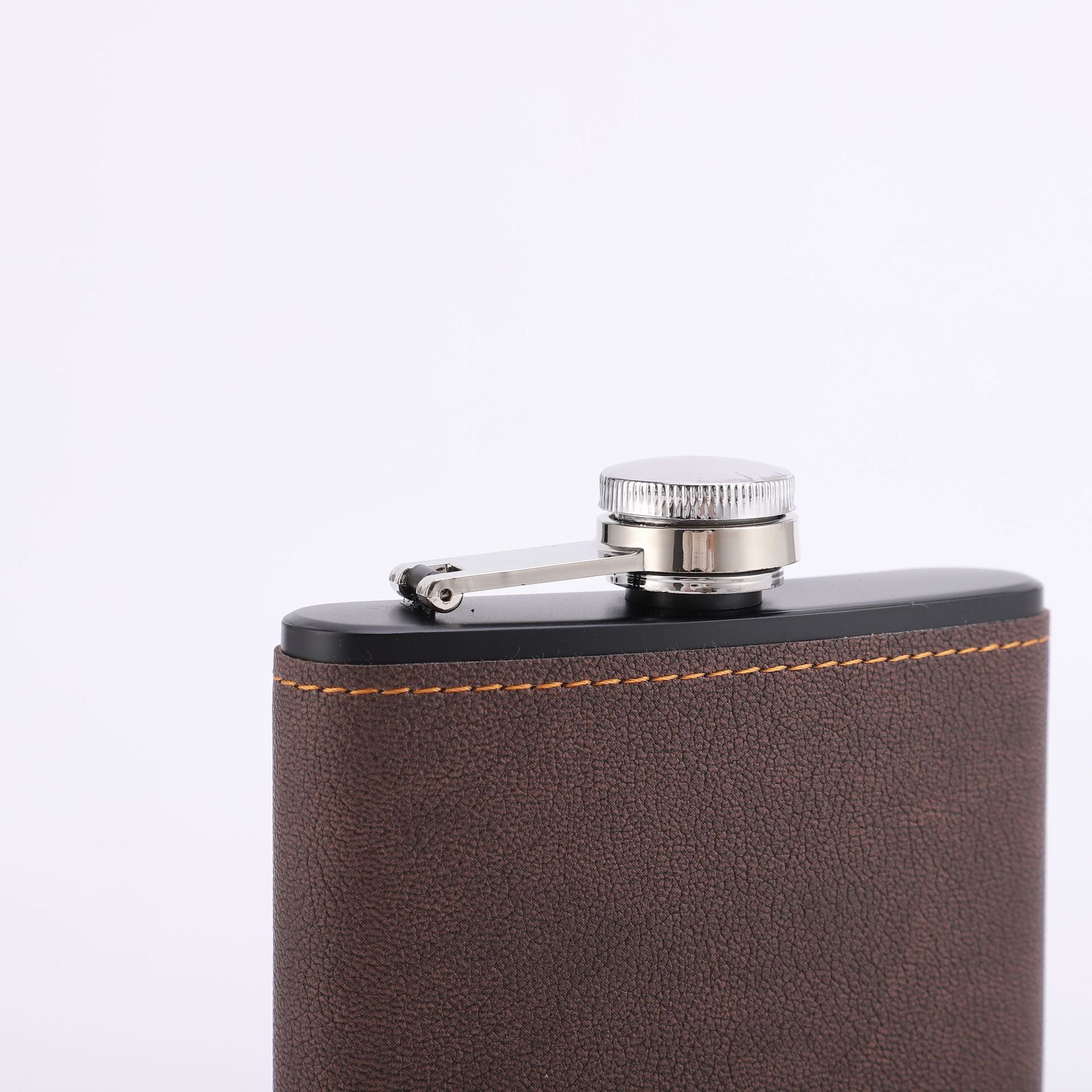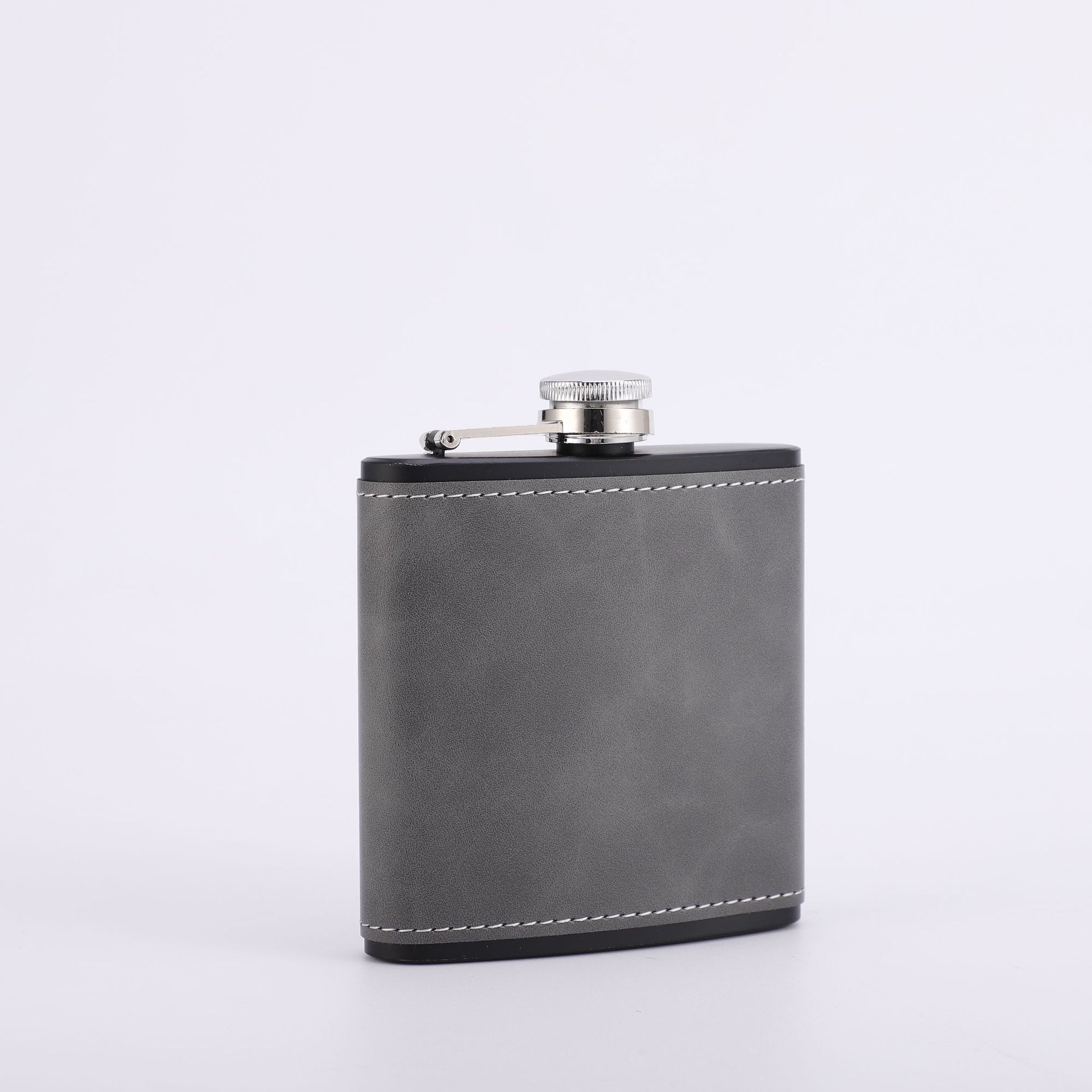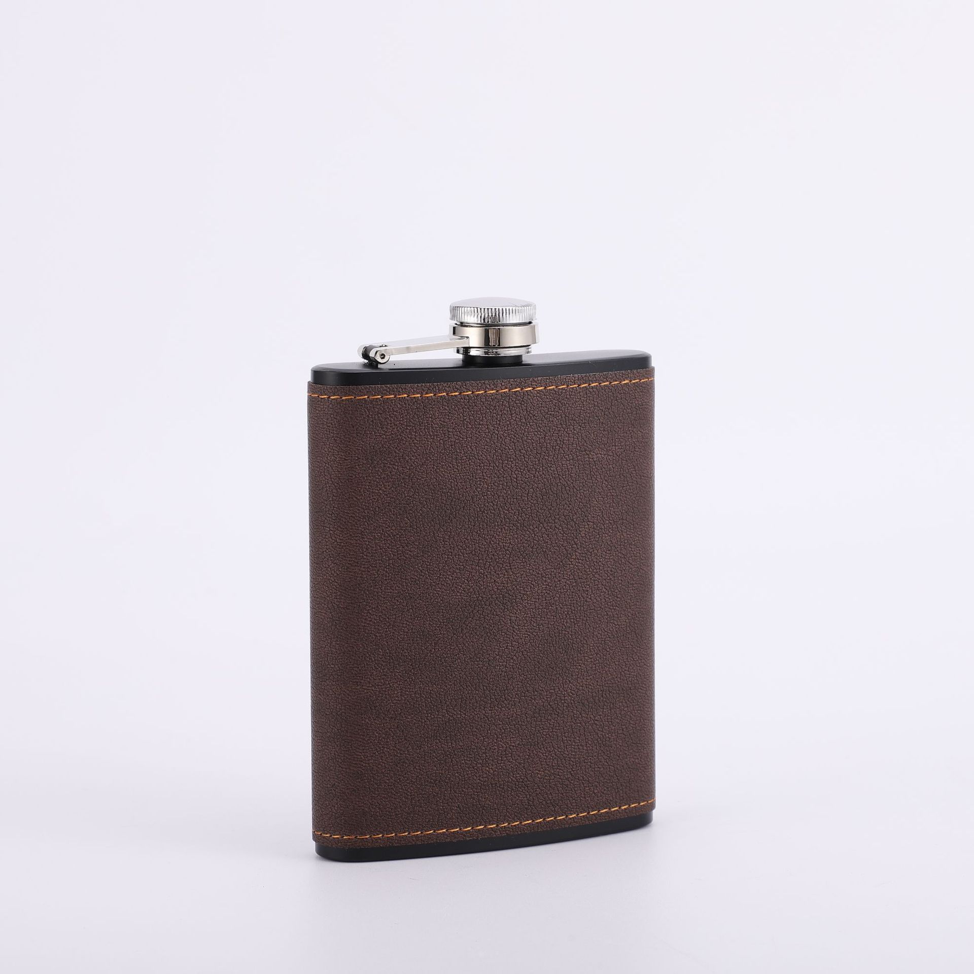 厂家供应不锈钢酒壶激光雕刻皮革随身便携户外小酒壶瓶礼盒