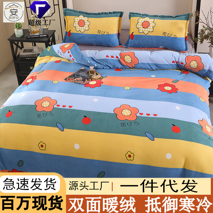 卸売ミルクベルベット掛け布団カバー単品A級厚手フランネル掛け布団カバー学生寮掛け布団カバーシングル冬ギフト