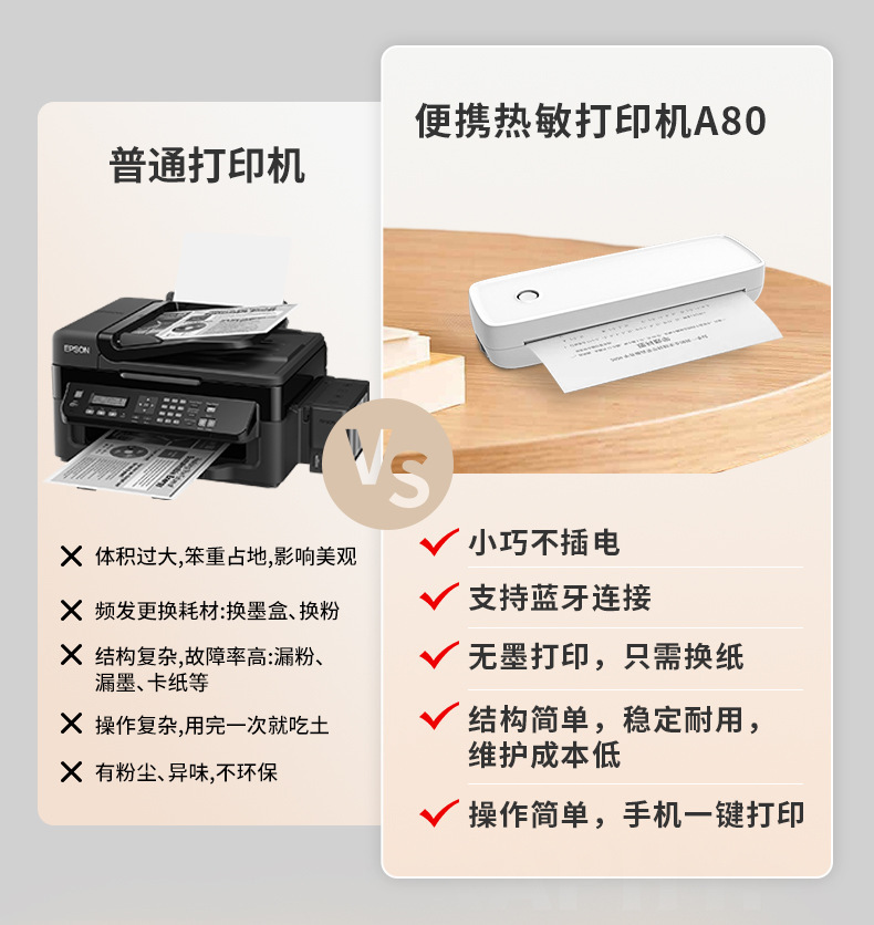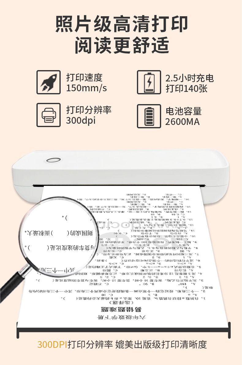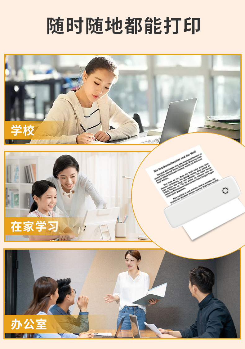 ポータブルプリンタオフィスミニプリンタ小型家庭用a4インクなしミニサーマルプリンタ無線bluetooth