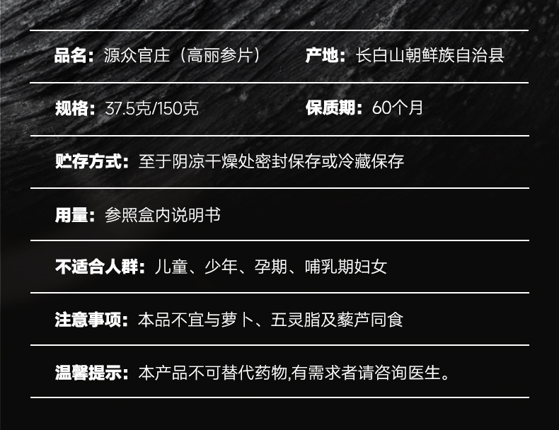 源衆官庄高麗参片5年根高麗紅参片箱入り無糖別直参人参代件