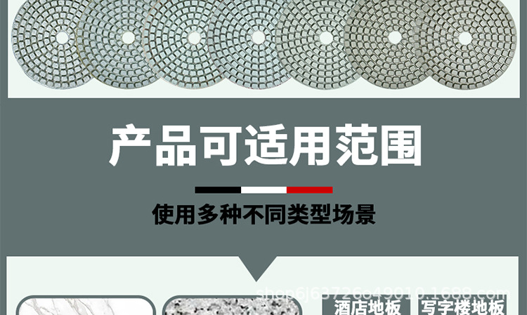 適用範囲 石材、タイル、岩板、大理石、石英石磨き研磨