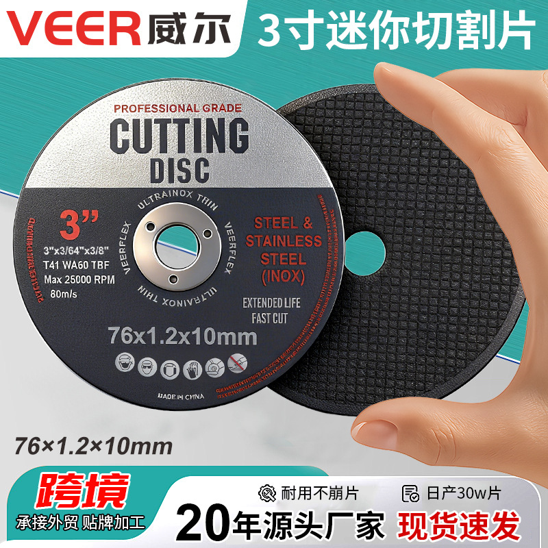 迷你3寸角磨机小切片高速砂轮片角磨片75mm/76mm锯片气动切割片