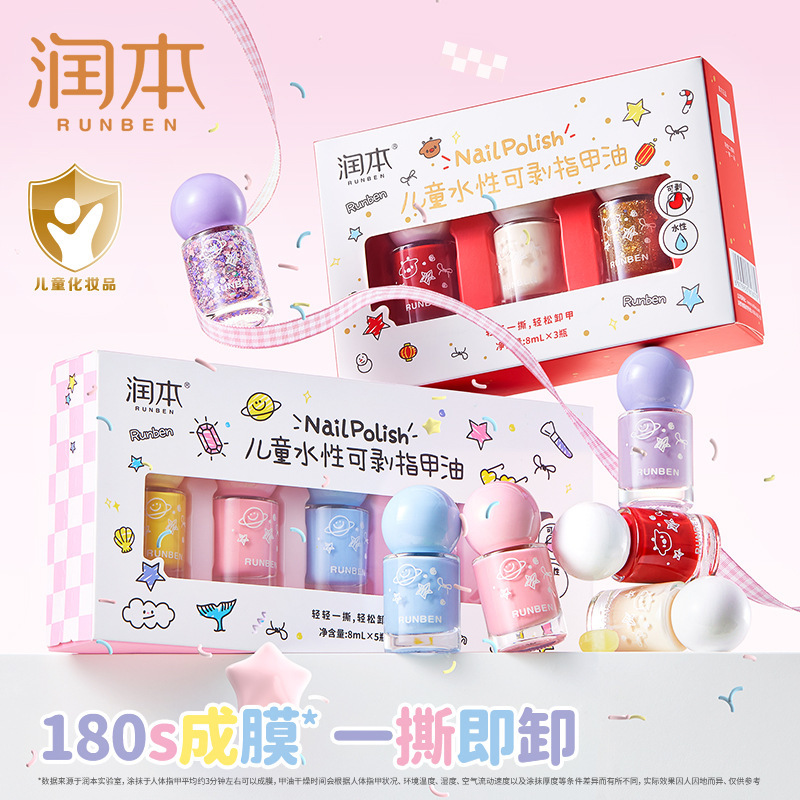 润本儿童指甲油水性无味可撕拉免烤快干女孩专用生日美甲新年礼物