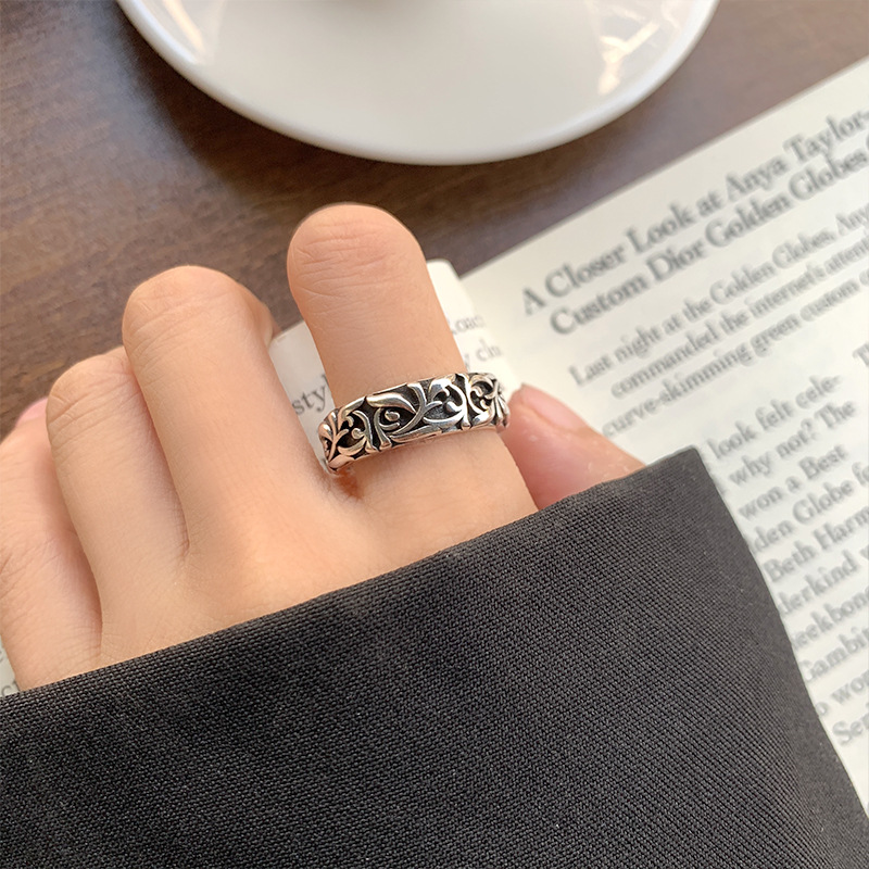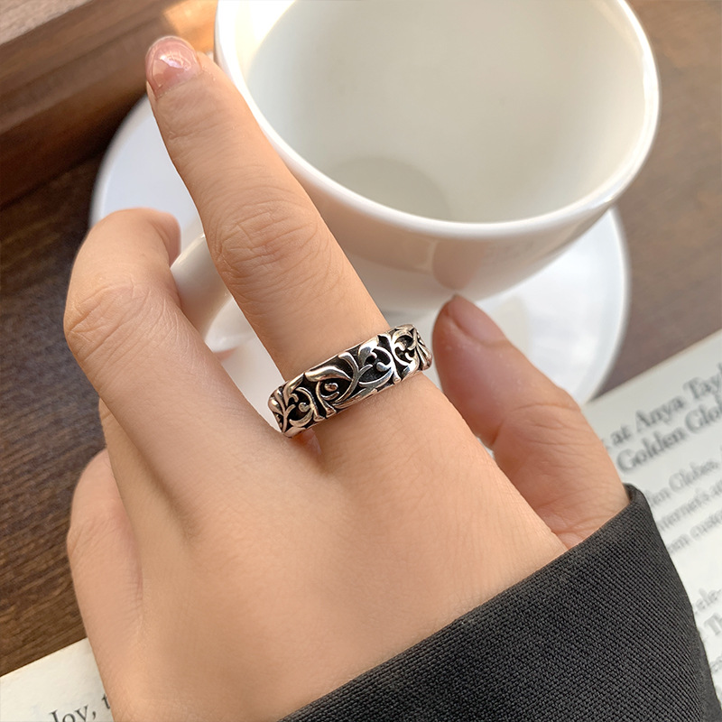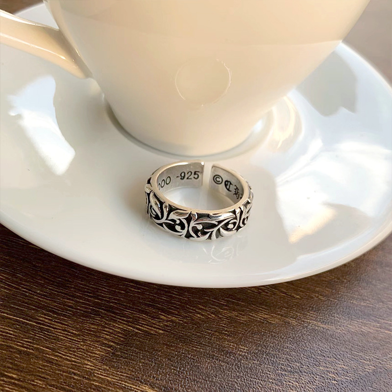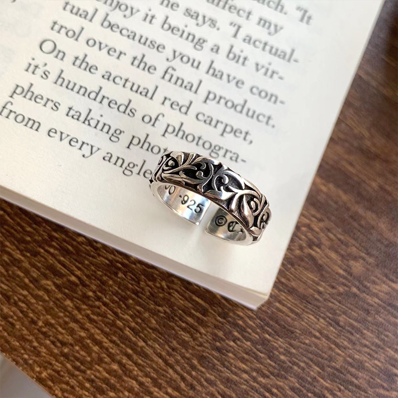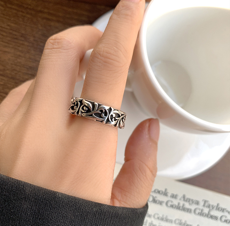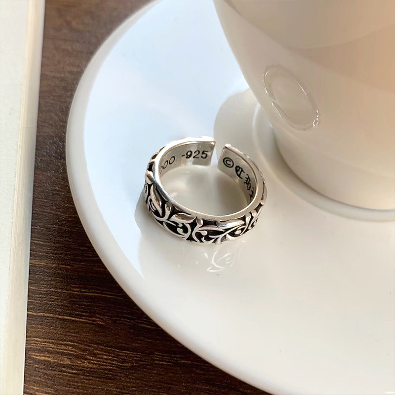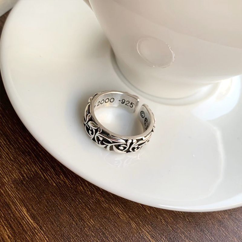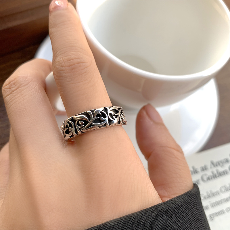新型個性クロス純銀指輪男女カップル潮人レトロ泰銀永遠の藤指輪リング