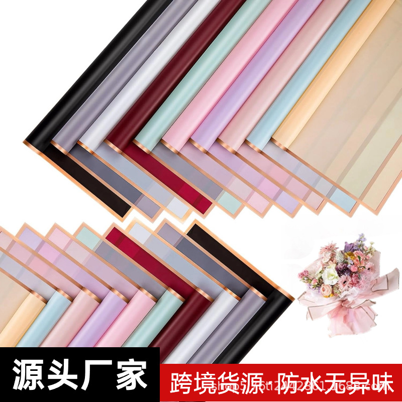 国境を越えたラベル付きゴールドエッジゼリーフィルム防水マット紙半透明の花の包装紙卸売フラワーショップの花の包装材料