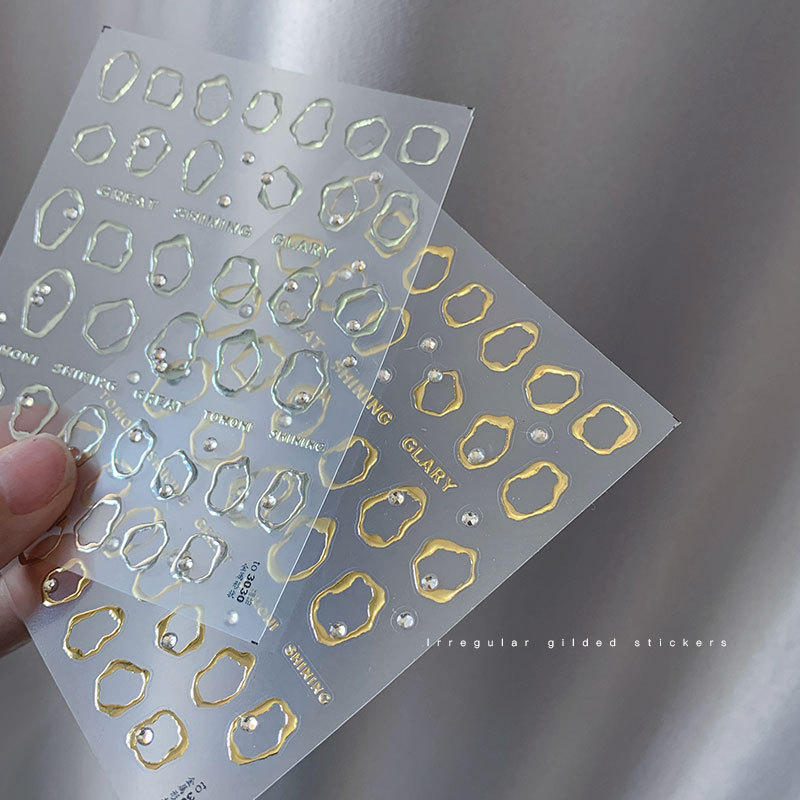 新商品の不規則な金箔のネイルシールの立体的な金箔の金網の赤い結晶のドリルのゴムの爪のシールの卸売り