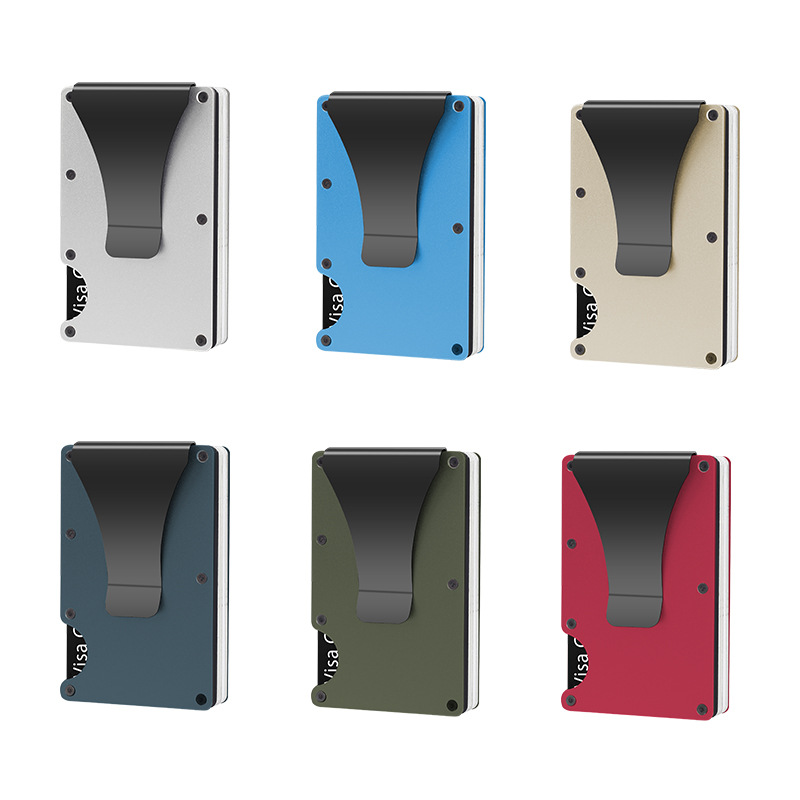 国境を越えた超薄型の極めてシンプルな財布アルミニウム合金rfid盗難防止カードクリップ男性金属コンパクト財布