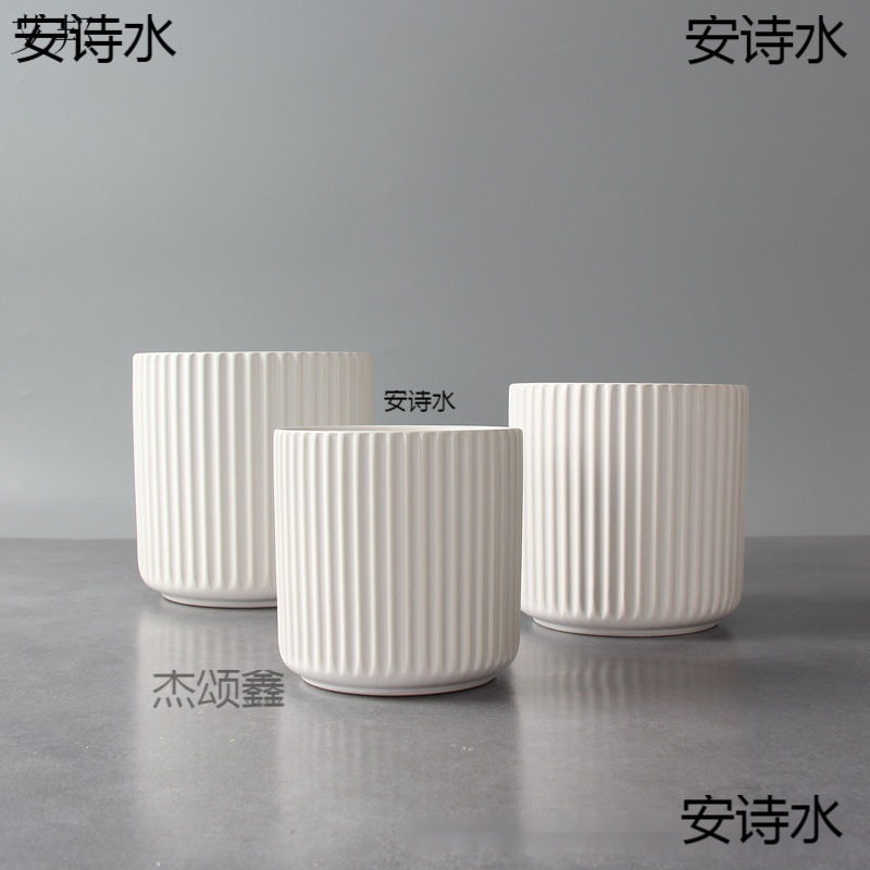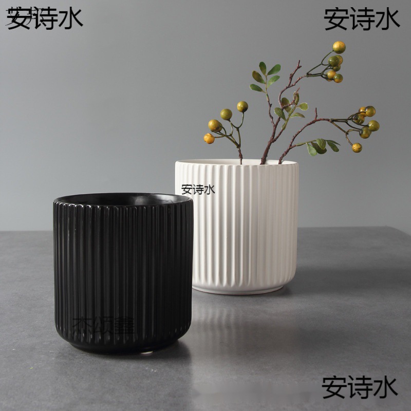 卸売り陶磁器の植木鉢は簡単で、北欧風のつや消しの白黒のストライプのアイデアは家庭の柔らかい工芸品の置物を飾ります。