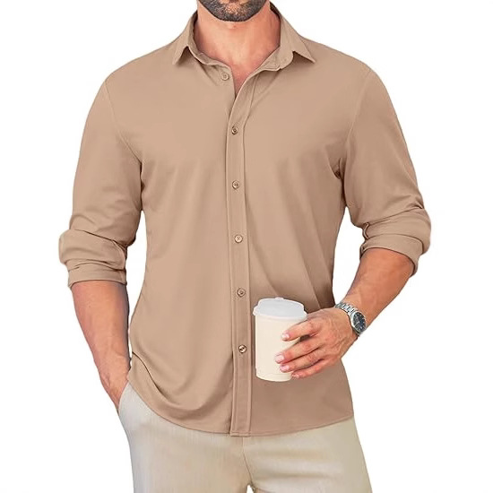 ヨーロッパとアメリカのアマゾンクロスボーダーローマンクロス無地カジュアル長袖メンズシャツラペルトップ