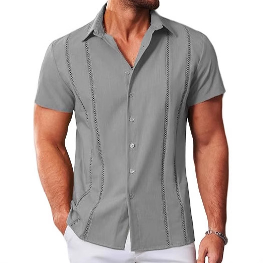 クロスボーダーの新しいアマゾンレース中空メンズシャツゆったりと快適な半袖ビーチシャツ