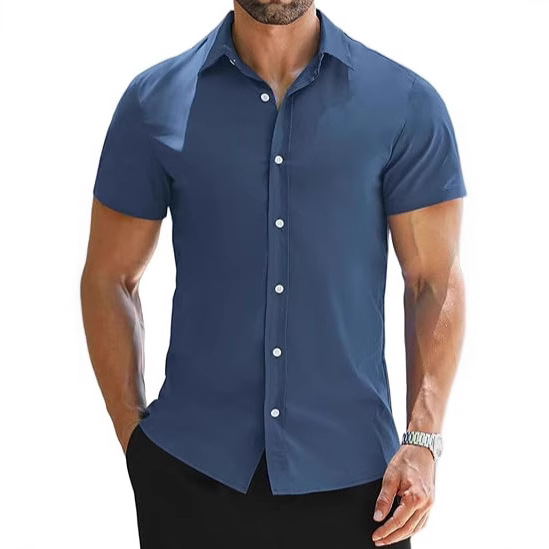 ヨーロッパとアメリカのクロスボーダー Amazon 外国貿易メンズスリムシャツ半袖カジュアルボタンダウンシャツメンズビーチ夏