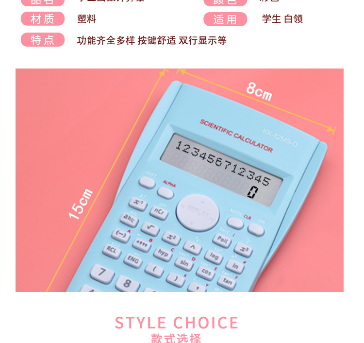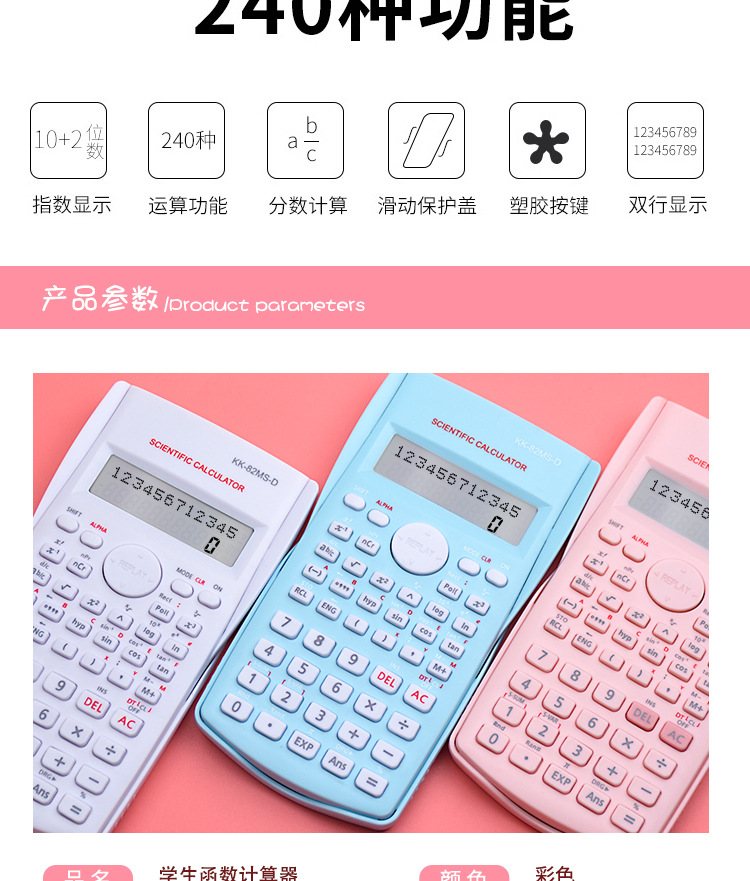 仕様 関数電卓 - ガーリーピンク,関数電卓 - クラウドホワイト,関数電卓 - ライトブルー,関数電卓 - ディープブルー,卸売りの場合、電池は付属しません。電池の代理発送も承ります。