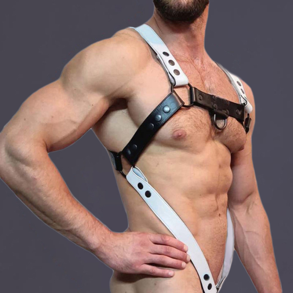 革製男性肩ひもアクセサリークラブダンス衣装アクセサリー白黒赤多色オプション