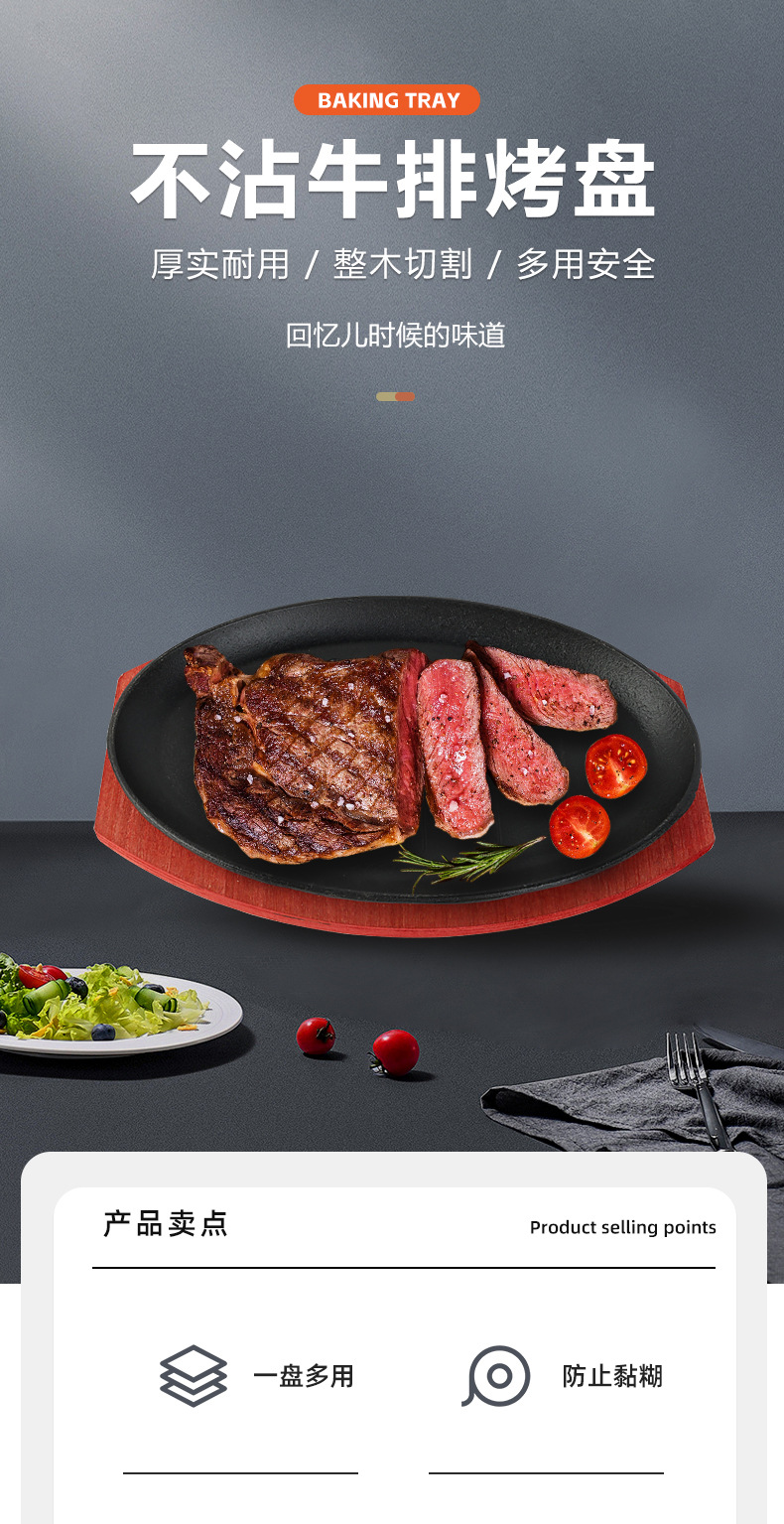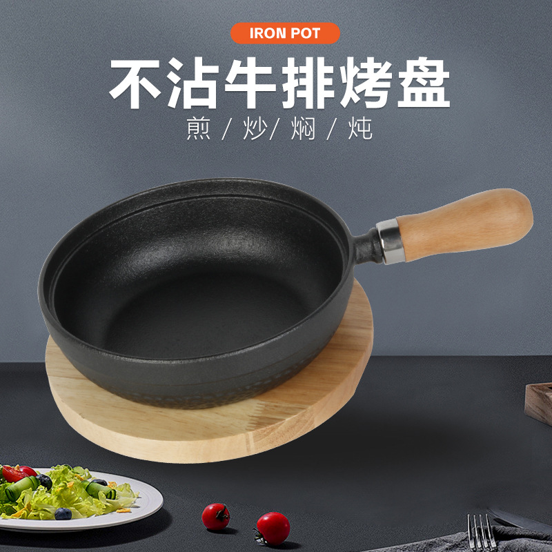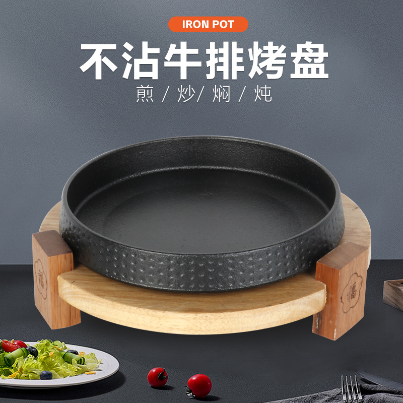 竹鋳鉄ステーキプレート洋食レストラン鉄板焼きプレート家庭用ラウンドフライドステーキノンスティック鋳鉄バーベキューバーベキュープレート