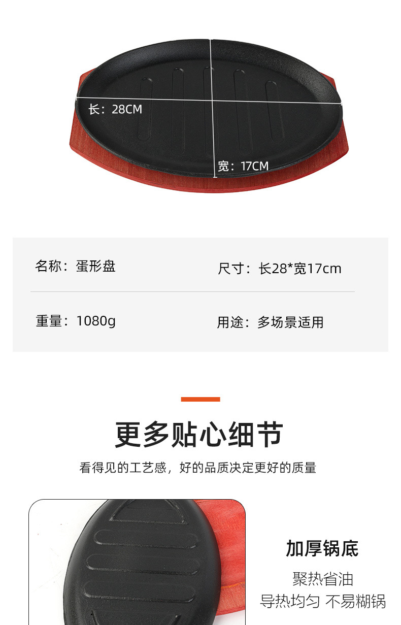 メーカー直供ステーキ鉄板焼きステーキ鉄板焼きプレート鉄板焼き卵形ウエストプレート